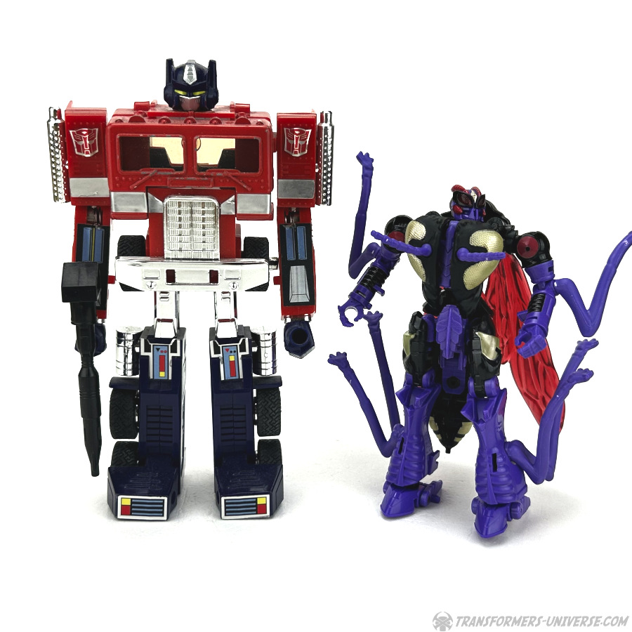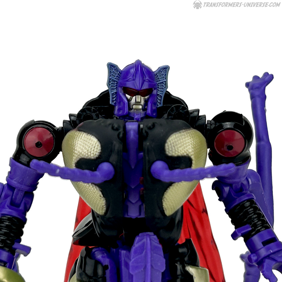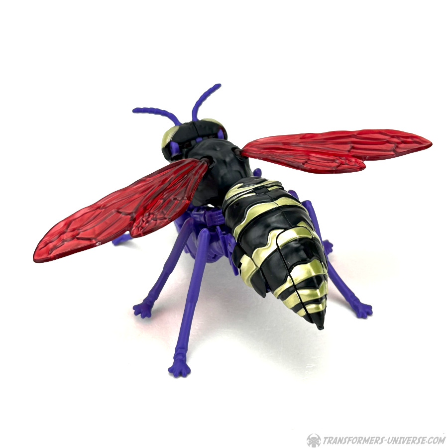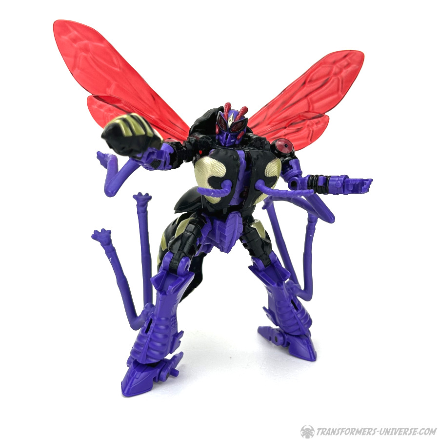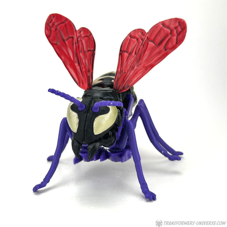 Skywasp is a straight-up repaint, but comes with an additional head you can switch out for the standard Waspinator noggin’. The head is based on the non-Mutant head of the original Beast Wars Waspinator figure (the one used for Buzzsaw), just in purple instead of green.