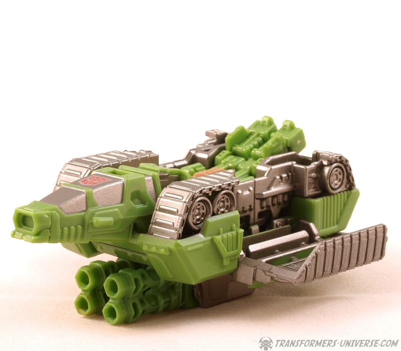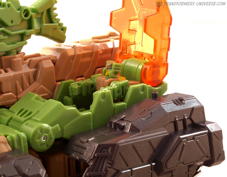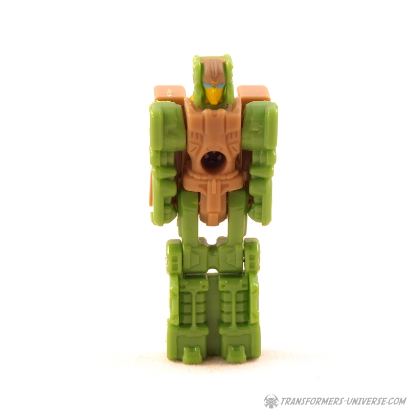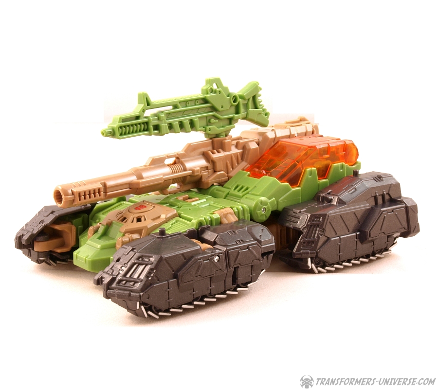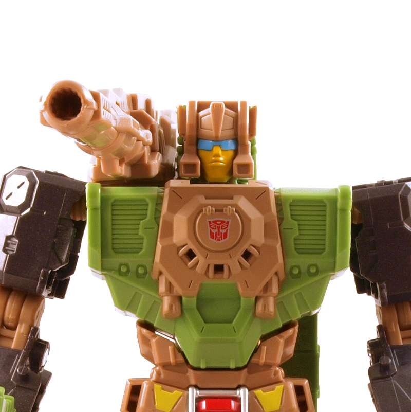 Remarks: In 2016 and 2017, Hasbro's Titans Return line had its own counterpart series in Japan, called Legends. Usually the Legends figures received a somewhat more "premium" paint job, often more cartoon accurate, and didn't bother to give individual names to the Headmaster figures (and they did call them Headmasters instead of Titan Masters). Another example of this trend is Hardhead, who is mostly identical to his Titans Return counterpart (and uses the same mold as Titans Return Quake), but also carries the converting tank (called 'Tankette') that came with the Titans Return Terri-Bull, repainted to match Hardhead's colors.