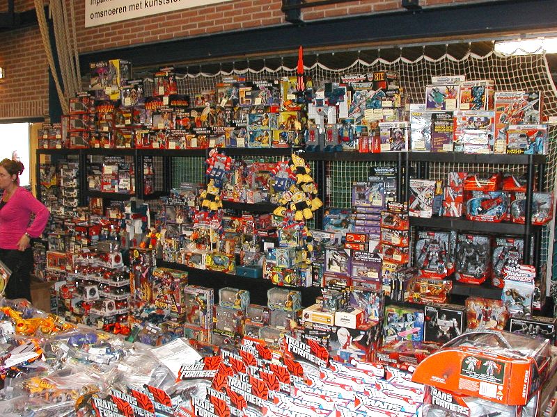 Kisten über Kisten gefüllt mit jenem kostbarsten aller Güter, den von uns so verehrten Plastikfigürchen aus dem Hause Hasbro bzw. Takara-Tomy. In vielfältiger Form und Weise präsentierten sie sich uns. Originalverpackte Schätze aus G1 Tagen standen neben endlosen Reihen von Beast Wars Transformern, flankiert von japanischen Exklusivfiguren und den noch glänzenden Paletten mit dem Neusten von Movie und Animated.