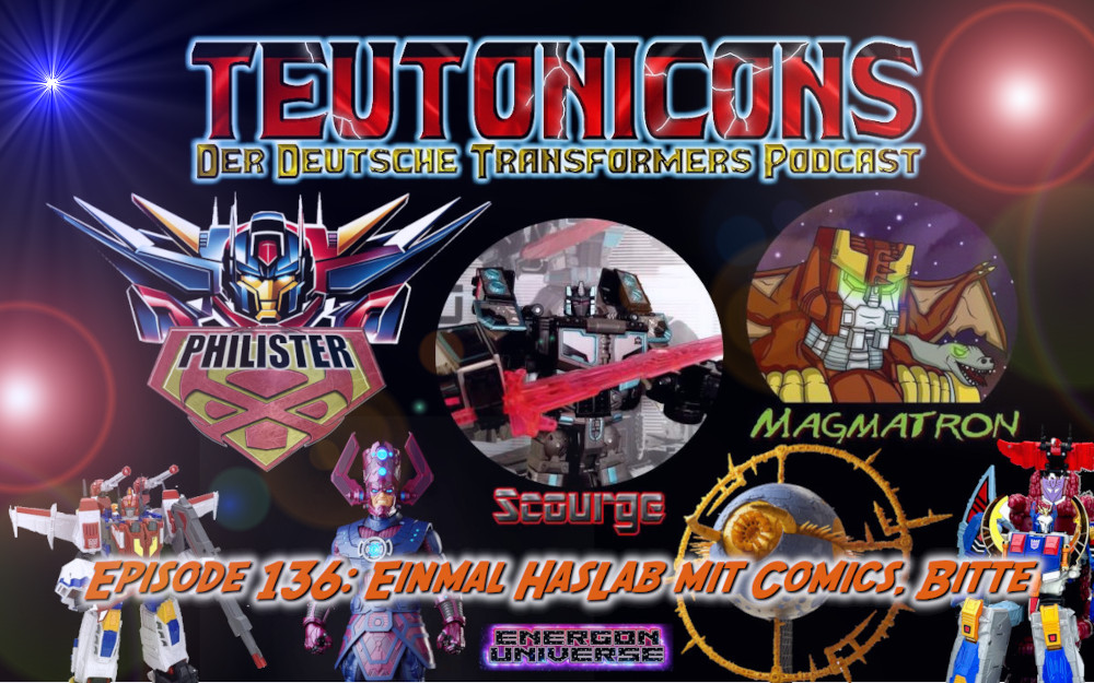 In der neusten Episode der Teutonicons freuen wir uns alle, dass unser HasLab Deathsaurus endlich angekommen ist und machen zur Feier des Tages dann auch gleich mal HasLab zum Thema. Von Unicron über das Krümelmonster bis zu Jabbas Segelbarkasse gehen wir die Projekte durch und spekulieren mal wild drauf los, was als nächstes kommen könnte. Außerdem reagieren wir mit Entsetzen auf weitere Trainbots, planen zehn mögliche Robosen Repaints, und geben ein Update zum Stand der Skybound Energon Universe Comics. Das alles und natürlich wie immer die neusten News aus der Welt der Transformers. Viel Spaß!