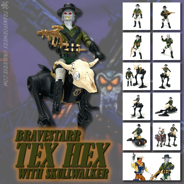 Die Ähnlichkeit zum Cartoon Charakter ist sehr gut, auch wenn Cartoon Tex Hex ausgemergelter wirkt, längere Haare hatte, sowie einen buschigeren Schnurrbart. Also man erkennt Tex problemlos. Die Beweglichkeit ist identisch zur Bravestarr Figur, also ziemlich gut, und Tex hat auch die gleichen Probleme wie Bravestarr, nämlich dass die Figur eigentlich zu groß ist, um sinnvoll mit Figuren aus anderen Spielzeugreihen zu interagieren.