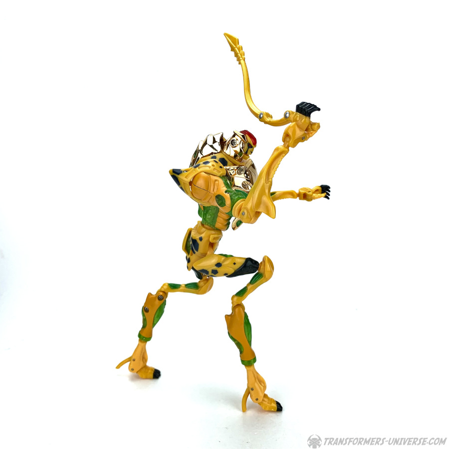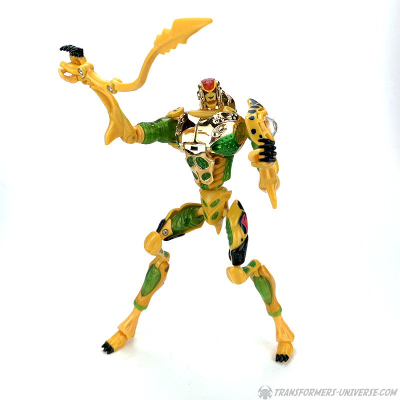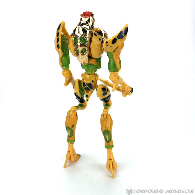 Bemerkungen: Meiner Meinung nach ist Cheetor nach wie vor das beste Beispiel eines sich entwickelnden Charakters im gesamten Transformers Mythos, aber das ändert nicht die Tatsache, dass die Beast Machines Version dieses Charakters nicht gerade die beste ist. Sie sieht jetzt nicht schlecht aus, aber die übertriebenen Proportionen und der instabile Stand sorgen dafür, dass er in punkto Spielspaß nicht viel zu bieten hat.