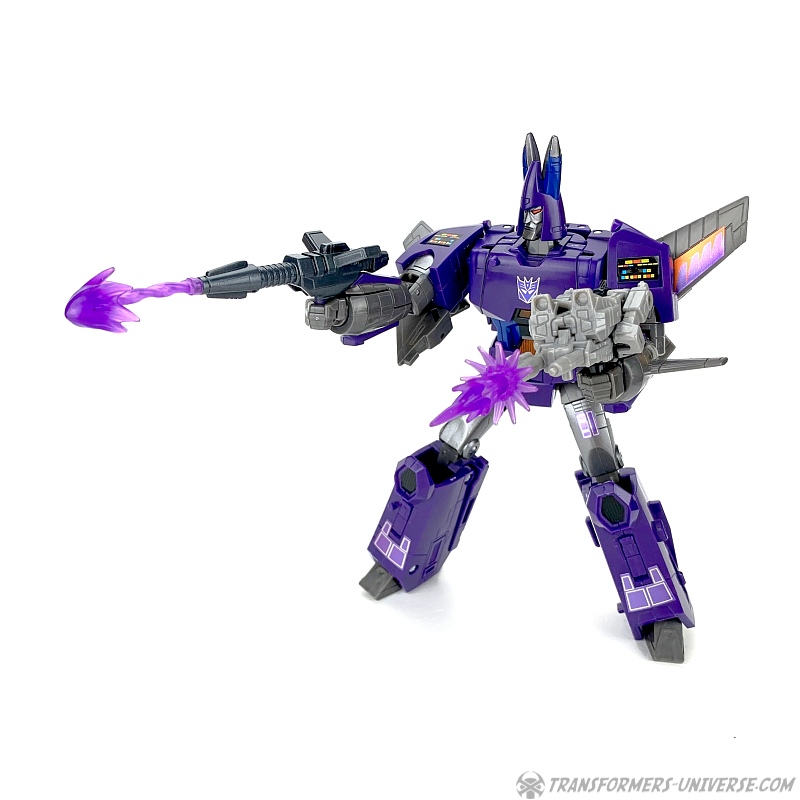 Der einzige nicht farb-basierte Unterschied zwischen dieser und der Kingdom Figur ist, dass Selects Cyclonus seinen Targetmaster Nightstick dabei hat (zusätzlich zu seiner normalen Waffe). Nightstick ist ein weiteres Repaint des Siege Battlemaster Blowpipe. Nett, dass er dabei ist, aber gebraucht hätte ich ihn jetzt nicht unbedingt. Leider erhöht diese Zusatzfigur (und die Effekt-Parts) die Preisklasse hier dann doch gegenüber der Kingdom Figur.