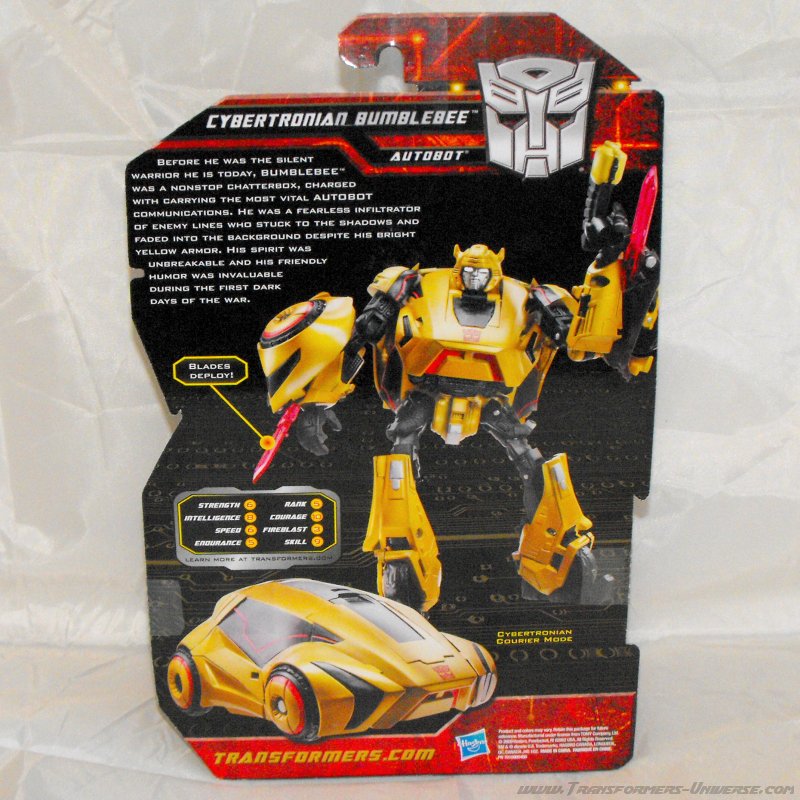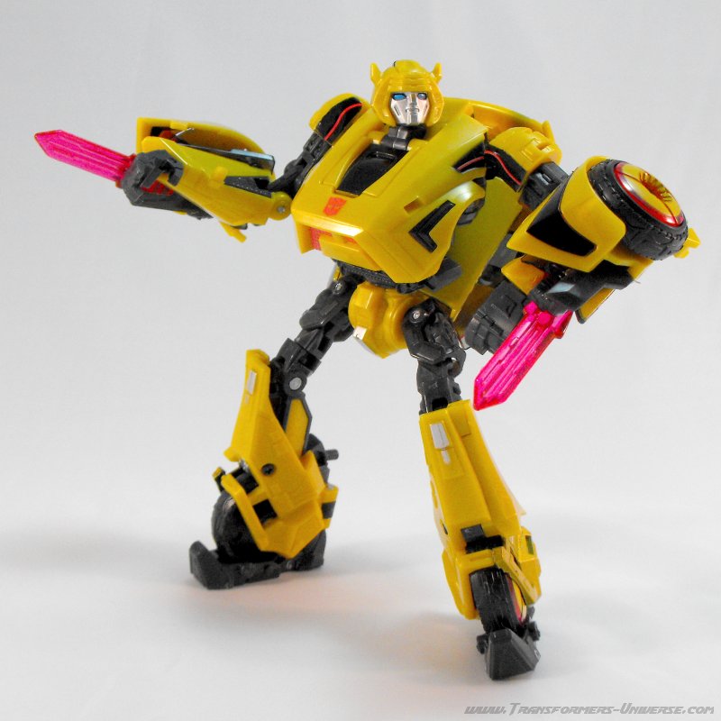 Bemerkungen: Der Bumblebee aus War for Cybertron ist natürlich klar dem originalen G1 Bumblebee nachempfunden, aber es finden sich doch auch einige Elemente des Gelblings aus der Movie-Reihe wieder. So z.B. die Klingen am Arm, sowie die Tatsache dass er laut seinem Profil und seiner Historie im Buch Transformers: Exodus im Kampf gegen Megatron seine Stimme verloren hat. Was aber bleibt und sich von Kontinuität zu Kontinuität auch nie groß geändert hat ist, dass er einer von Optimus Primes engsten Vertrauten ist und sein Mut keine Grenzen kennt.