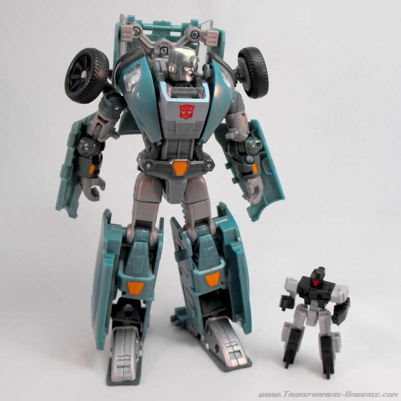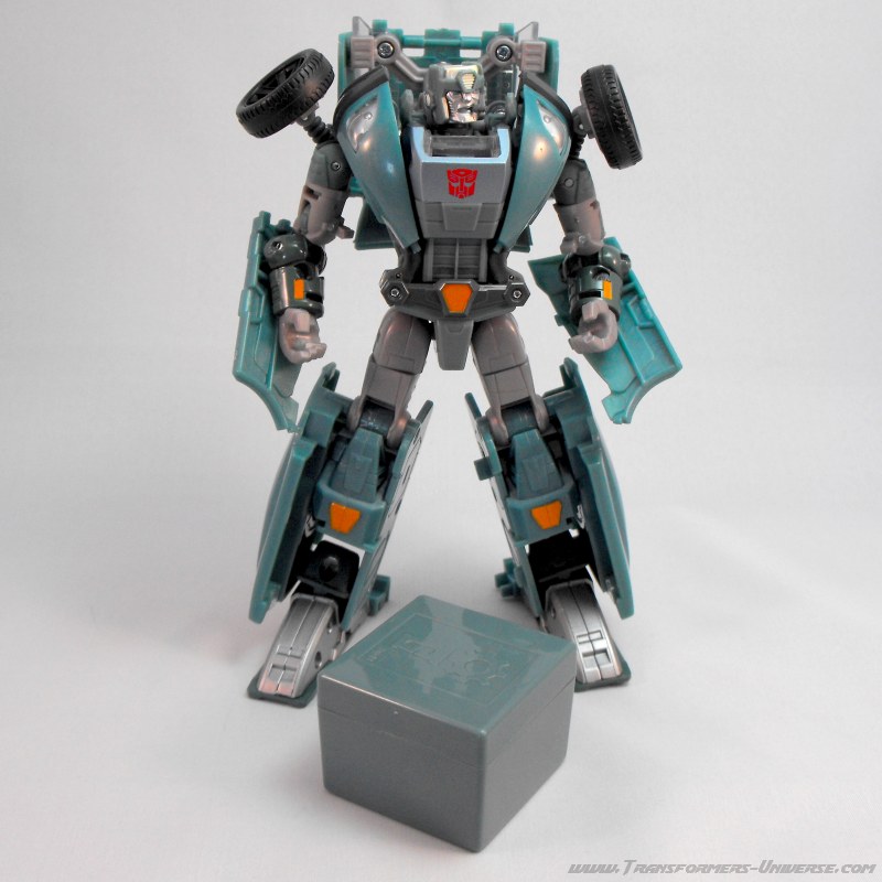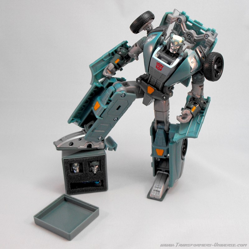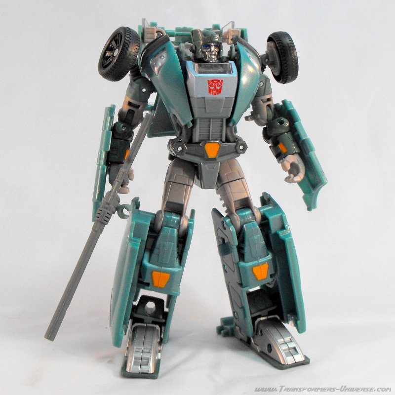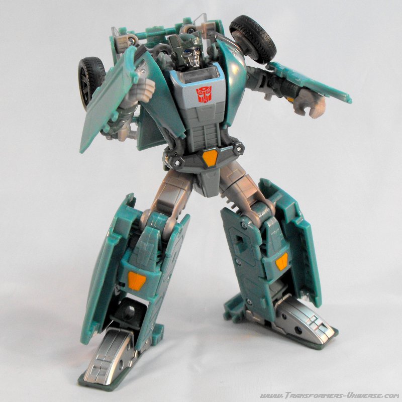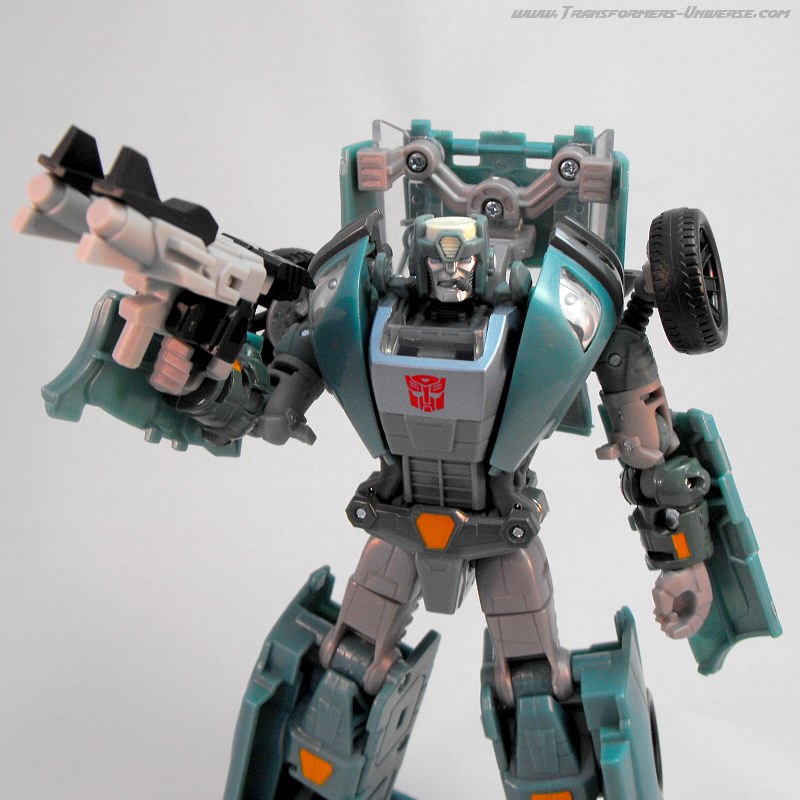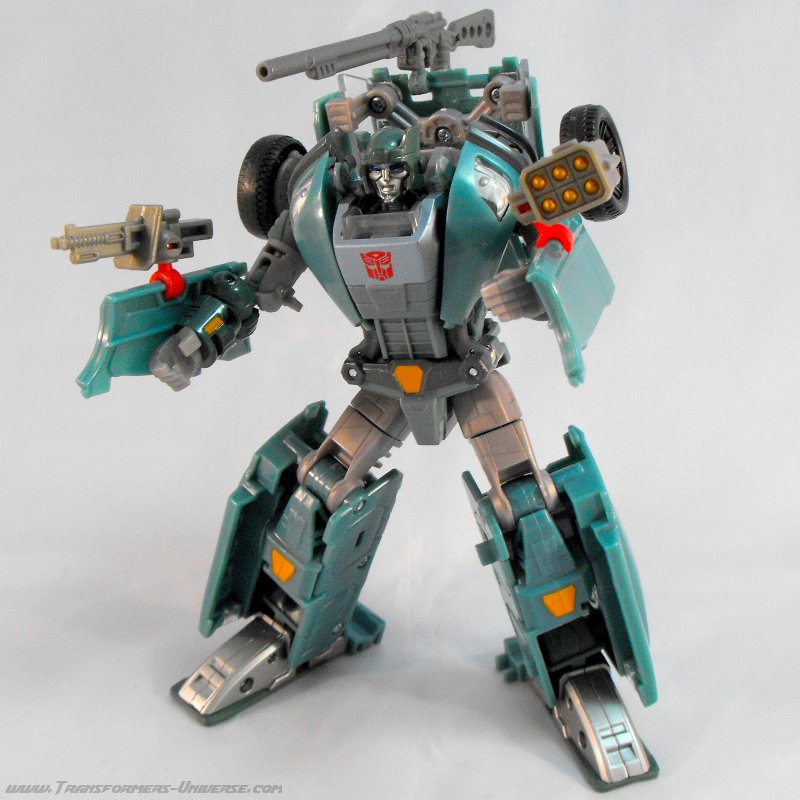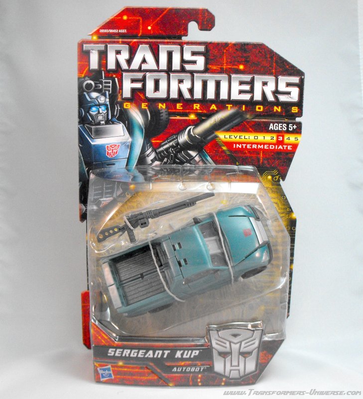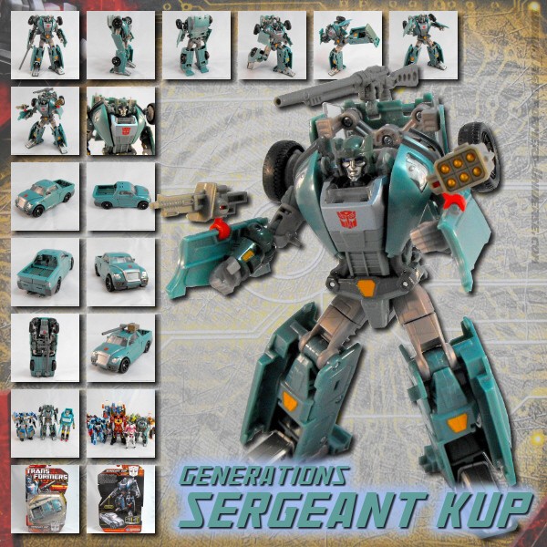 Robotermodus: Sergeant Kup aus der Generations Reihe ist natürlich eine Hommage an G1 Kup aus dem Jahr 1986. Der Look des Originalcharakters findet sich im Design des Kopfes wieder, wie auch in den Farben und bestimmten Designelementen wie seinen Schienenbeinen und dem Rucksack. Außerdem wurde noch eine kleine Zusatzhommage eingebaut, nämlich die kleine Windschutzscheibe, die vor Kups Kopf sitzt. Eine Anspielung an sein Design in Dreamwaves War Within Comicserie.
