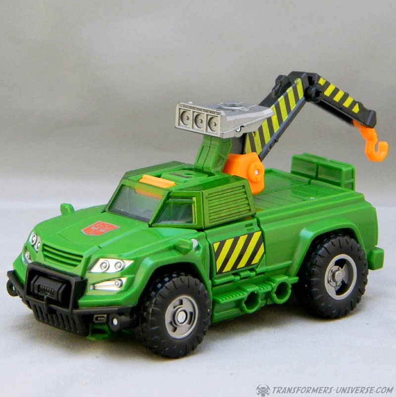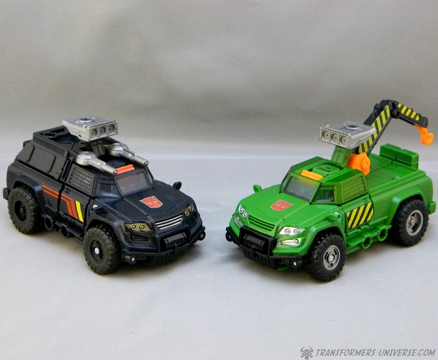 Bemerkungen: Thrilling 30 Hoist ist ein Retool von Thrilling 30 Trailcutter, den ich bereits rezensiert habe. Da Hoist und Trailbreaker ja bereits zu G1 Tagen Retools voneinander waren, macht es natürlich Sinn, dass es hier wieder so ist. Hoists neuer Kopf basiert auf seinem Aussehen in den IDW Comics. Der restliche Körper eher weniger, da er sich in den Comics nicht den gleichen Body mit Trailcutter teilt.