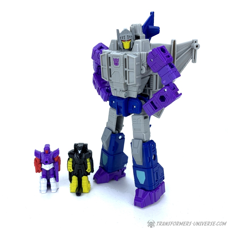 Obwohl ich die Autobot Targetmasters nie sonderlich mochte, war ich großer Fan des Decepticon Trios und hatte auch alle drei als Kind damals. Somit bin ich froh, dass wir das Trio in der Gegenwart wiedervereinen können. Ob man sich jetzt Titans Return Quake als drittes Mitglied hinstellt oder auf den angekündigten Legacy United Quake wartet ist natürlich Geschmackssache. Aber Needlenose braucht man so oder so. Insgesamt würde ich sagen, dass Spinister die geringfügig bessere Figur ist, aber der Unterschied ist minimal. Unterm Strich somit: ein toller Deluxe Decepticon Jet.