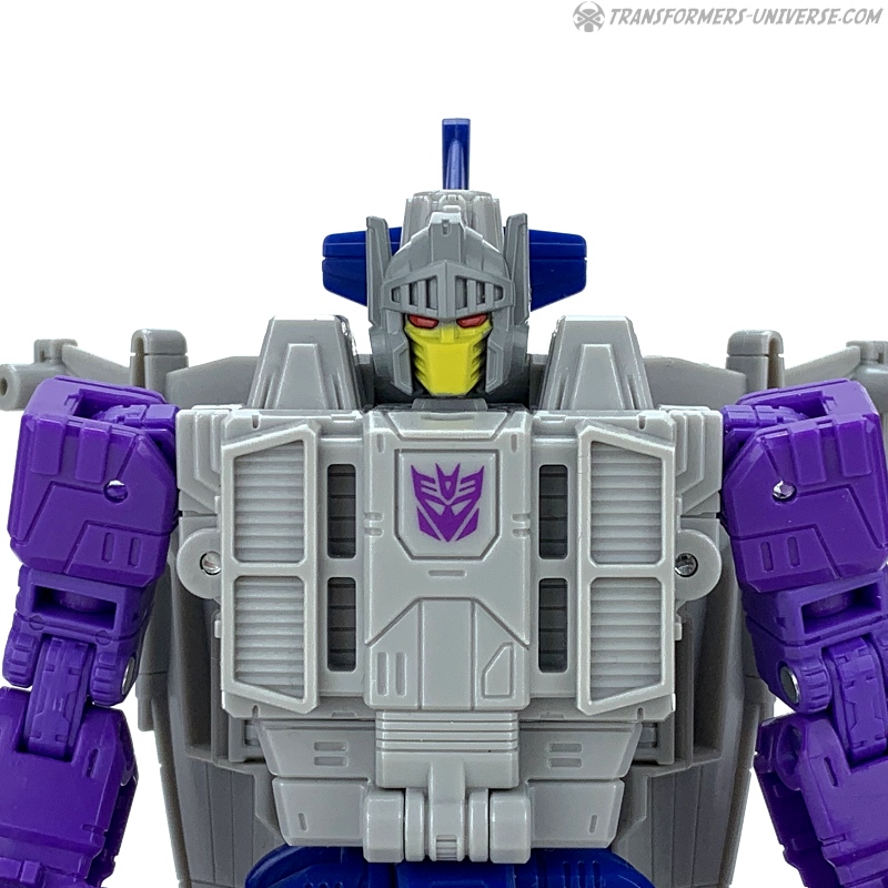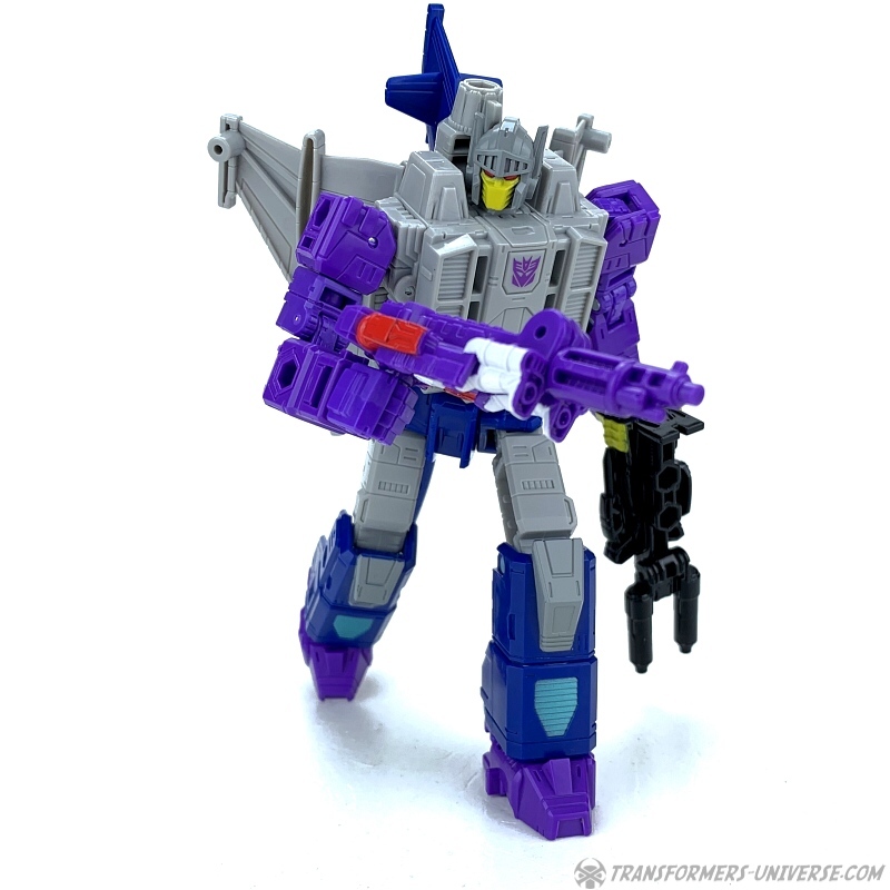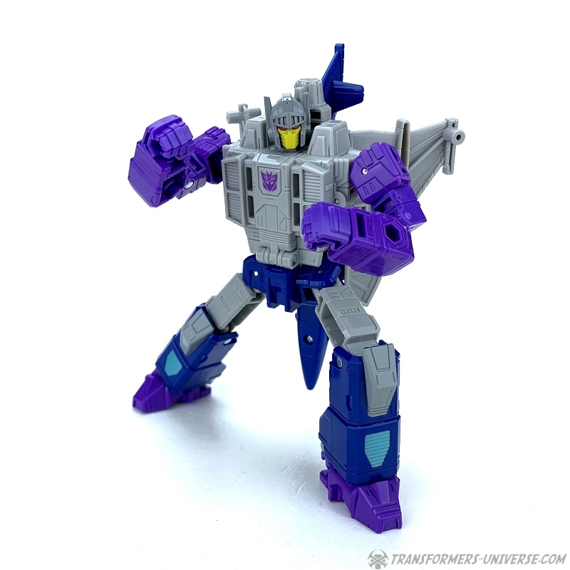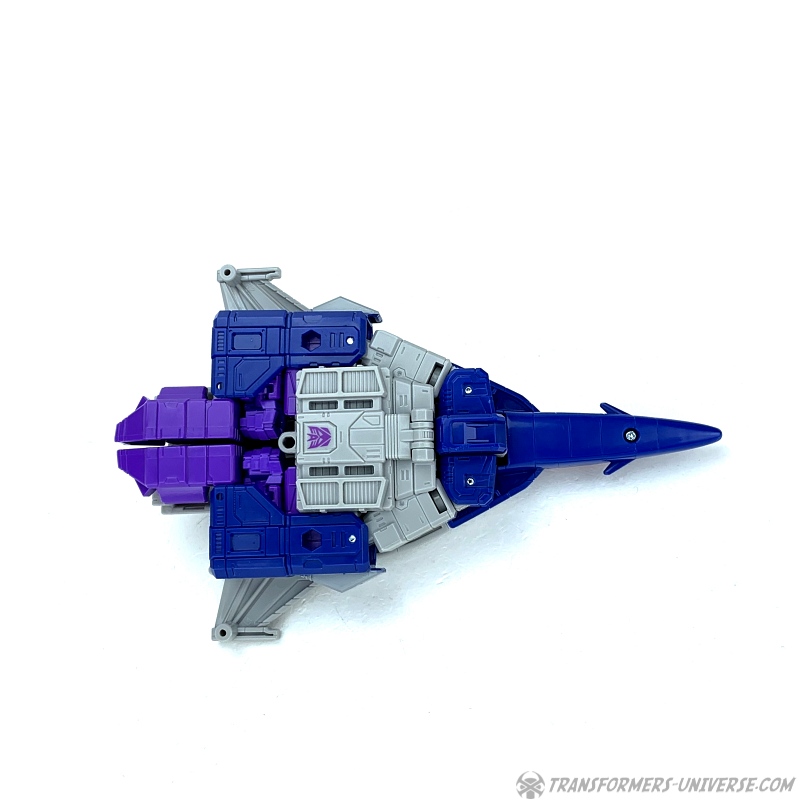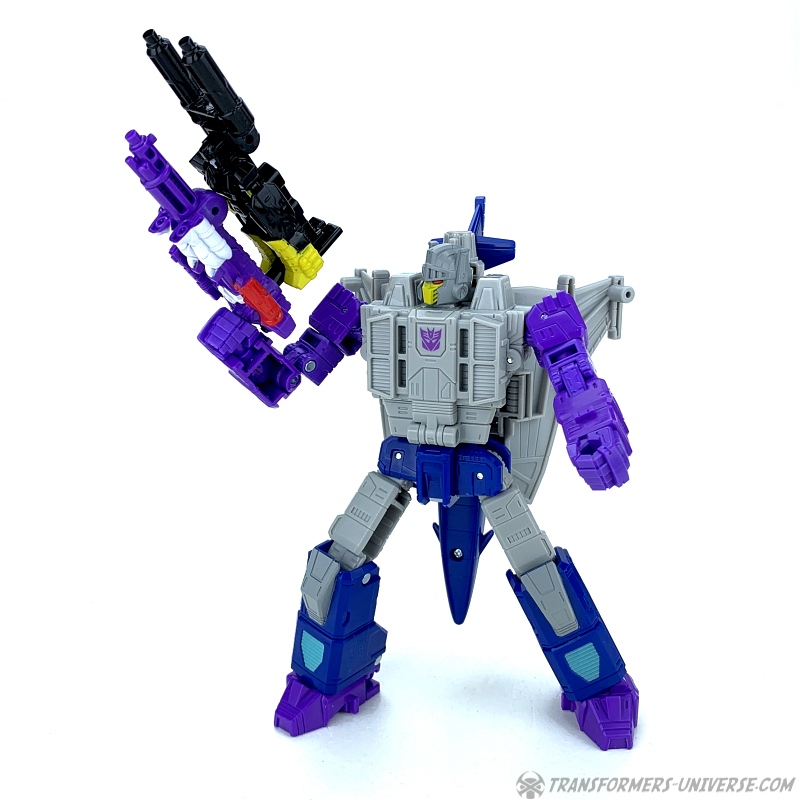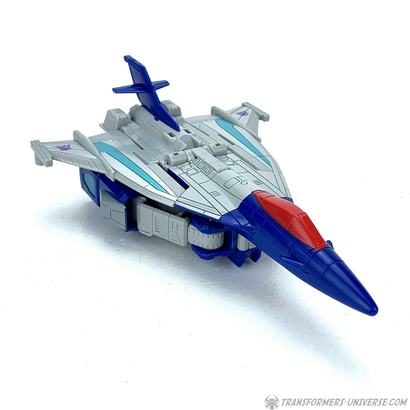Nun ist Needlenose in beiden Inkarnationen die Art von Jet Transformer, der fast den kompletten Jetmodus auf dem Rücken trägt, allerdings macht er das besser, als viele andere Figuren mit diesem Design. Das Cockpit hängt zwar relativ weit zwischen den Beinen runter, behindert die Beinbeweglichkeit aber nicht. Die Flügel können nach hinten klappen, so dass er die Arme frei schwingen kann. Die Beweglichkeit ist so gut, wie man es von einer Legacy Figur erwartet, somit ist von drehbaren Handgelenken bis beweglichen Füßen alles dabei.