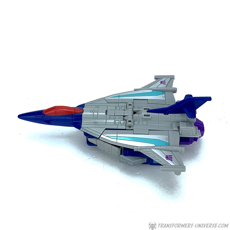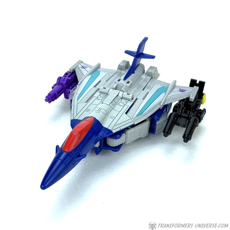 Davon aber abgesehen gibt es hier nichts auszusetzen. Der Jet sieht gut aus, die Targetmaster kann man unter den Flügeln anbringen, und von dem etwas kastenförmigen Unterbau mal abgesehen gibt es keine sichtbaren Roboterteile. Somit unterm Strich: hätte er ein Fahrgestell, wäre es ein genialer Jet.