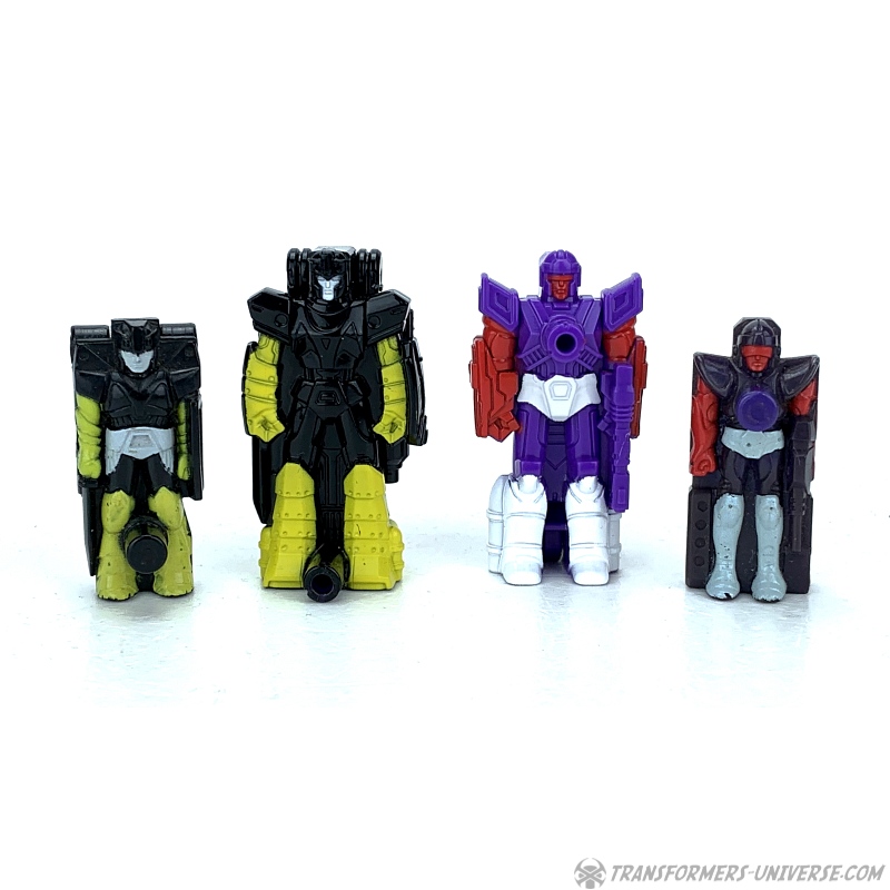 Partner: Eine Sache, die viele Leute an dem ansonsten genialen Siege Spinister auszusetzen hatten, war das Fehlen der Targetmaster. Das kann man bei Needlenose nicht ankreiden, denn er hat Zigzag und Sunbeam dabei, seine klassischen G1 Targetmaster. Und genaugenomen SIND es tatsächlich die G1 Figuren, nur etwas größer und ein klein wenig detaillierter, aber mit dem gleichen Mangel an Beweglichkeit. Sie werden zu Waffen, mehr machen sie nicht. Mir persönlich reicht das, denn die Jungs bleiben eh die ganze Zeit im Waffenmodus bei mir.