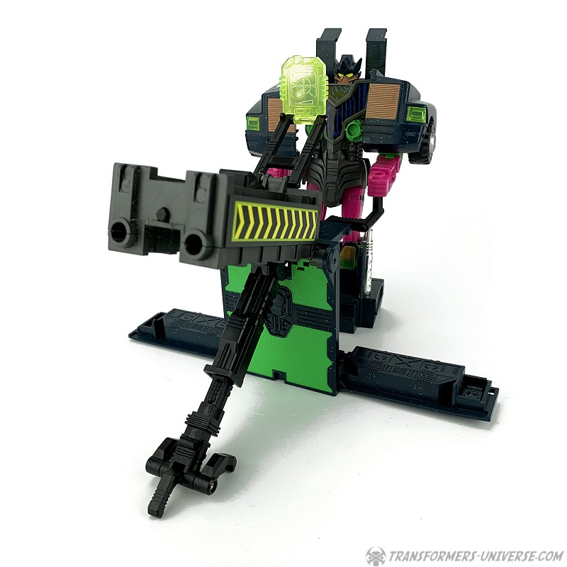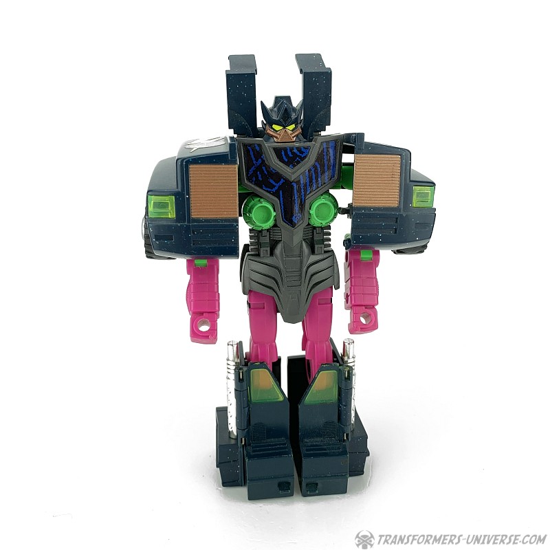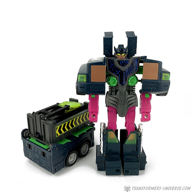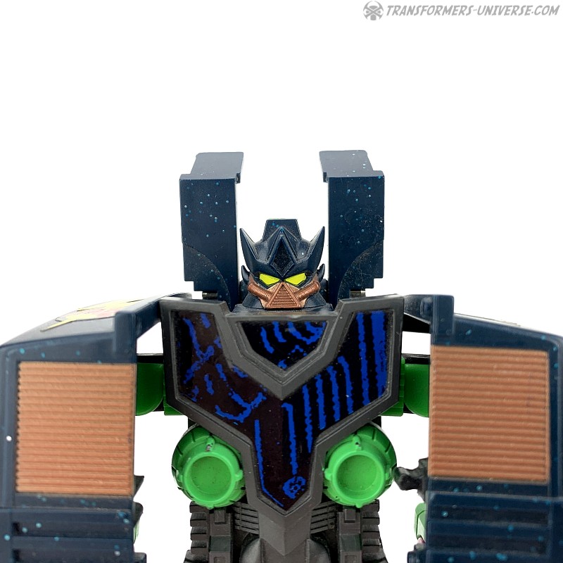 Ein Fahrzeug mit schrecklicher Kraft und purem Bösen. Verbindet einen scharfen Verstand mit diabolischer Grausamkeit. Sein ganzes Wesen ist der Rache verschrieben. Ein Alptraum von einem Gegner, der von purem Hass und dem Verlangen nach dem totalen Sieg getrieben wird. Wer dumm genug ist sich ihm in den Weg zu stellen wird überwältigt, zermalmt und beiseite geworfen. As Fahrzeug greift er von allen Seiten mit großer Feuerkraft an und richtet mit seiner heckmontierten Greifklaue schreckliche Schäden an. Im Zwischenmodus als multifunktionielle Kampfstation ist er ebenso bedrohlich. Als riesiger Roboter ragt er grauenerregend über alles hinaus.