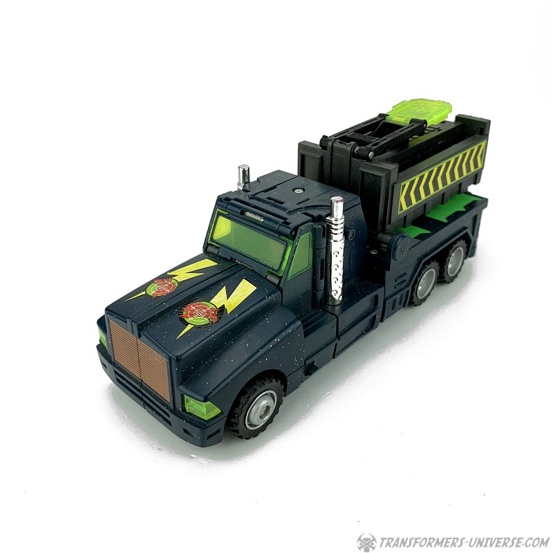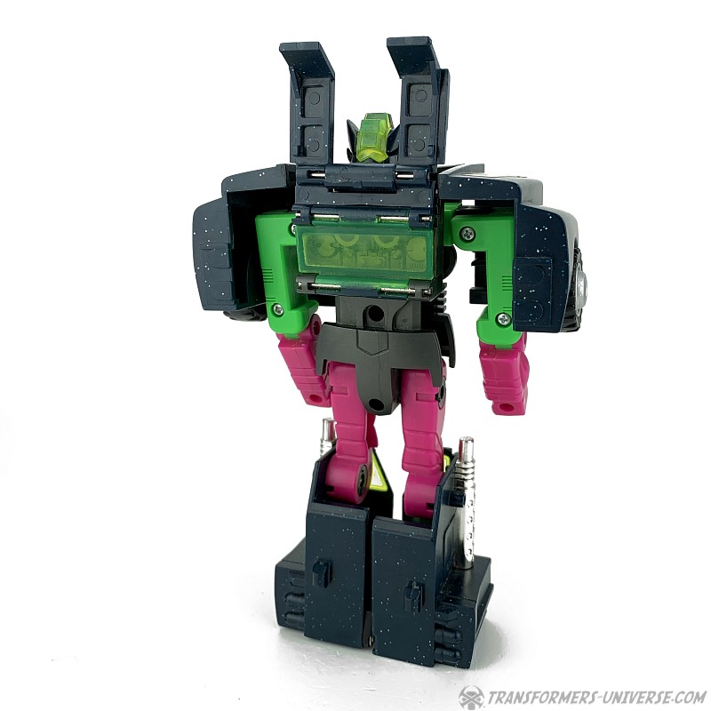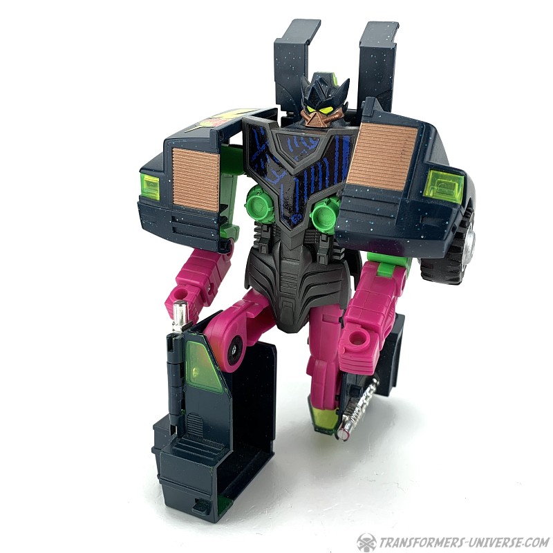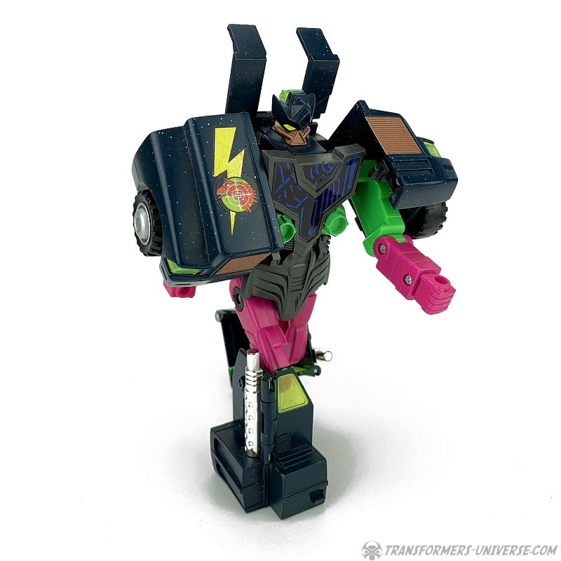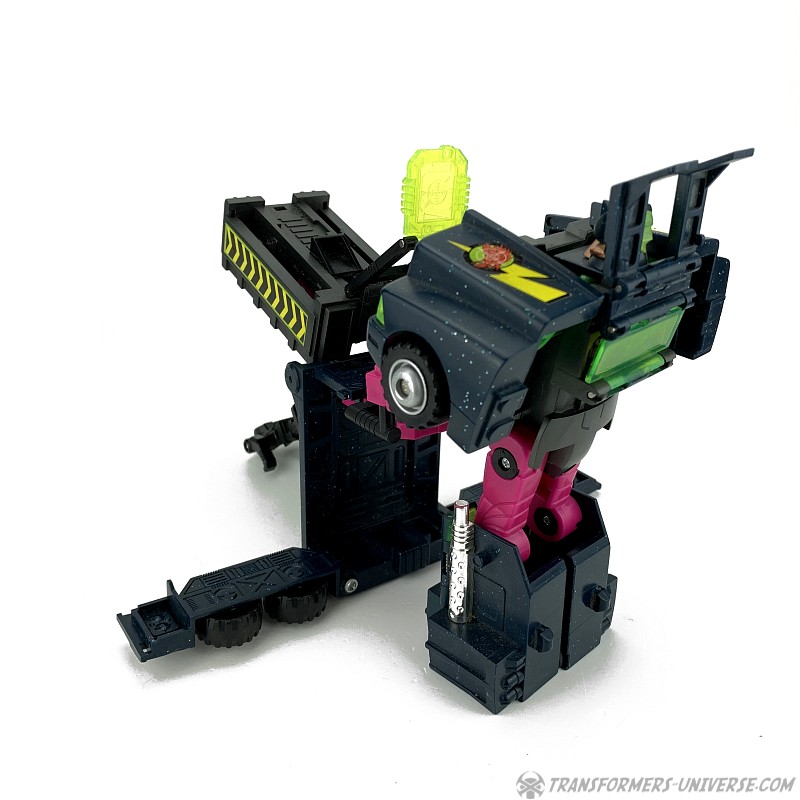 Robotermodus: Ein sehr interessanter Robotermodus, obwohl die Farbwahl ein wenig seltsam ist (pinke Waden???). Die geteilte Motorhaube des Truckmodus bildet die Schultern und das eigentliche Führerhaus wird zu den Füßen, womit Clench das vielleicht innovativste Truck-zum-Roboter-Design hat, was mir je untergekommen ist. Die Beweglichkeit ist für eine Figur aus dieser Zeit wirklich gut und die Detaillierung muss sich auch nicht verstecken. Das einzige, was mir wirklich fehlt, ist irgendeine Art von Handwaffe. Davon mal abgesehen aber ein guter Robotermodus.