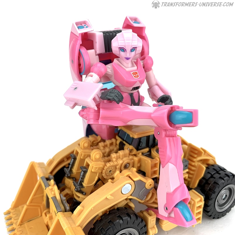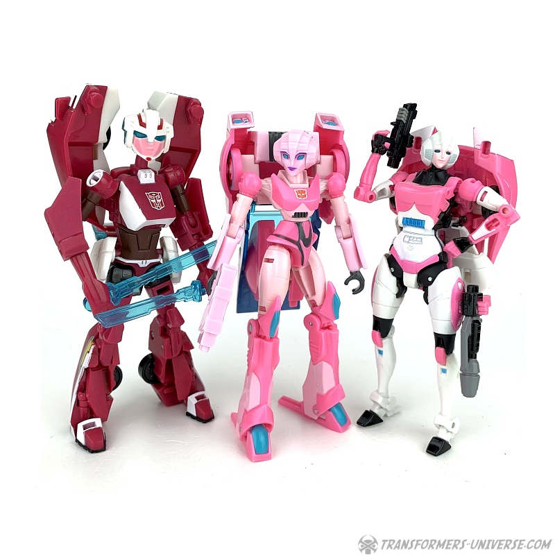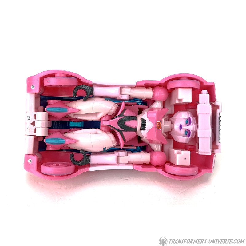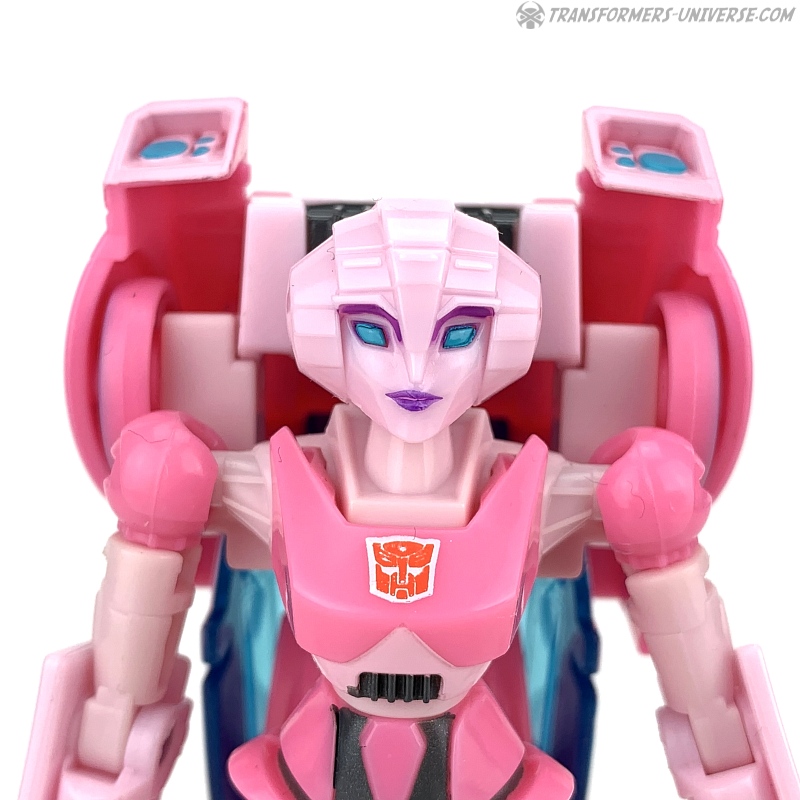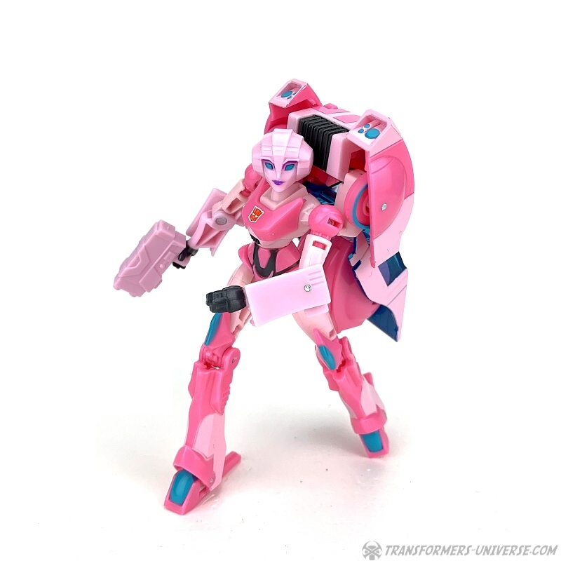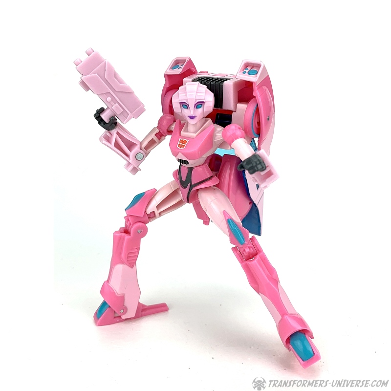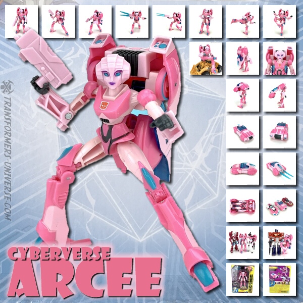 Bemerkungen: Arcee gehörte zur Crew der Arche und verbrachte den größten Teil der ersten Staffel des Cyberverse Cartoon in Stasis. Ab Staffel 2 jedoch wurden sie und Grimlock zu einem wunderbaren Duo, immer schwer bewaffnet, auf der Suche nach dem nächsten Kick und herrlich zerstörerisch. Unter anderem pulverisierten sie zusammen ein Asteroidenfeld, bestahlen einen riesigen unsichtbaren Vogel, und lenkten einen Schwarm gefährlicher Air Hammers um, indem sie deren Rufe imitierten. Vielleicht die unterhaltsamste Version von Arcee überhaupt.