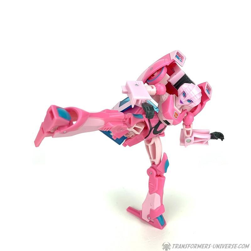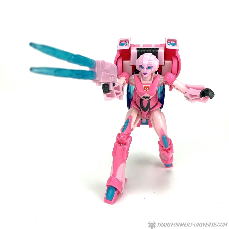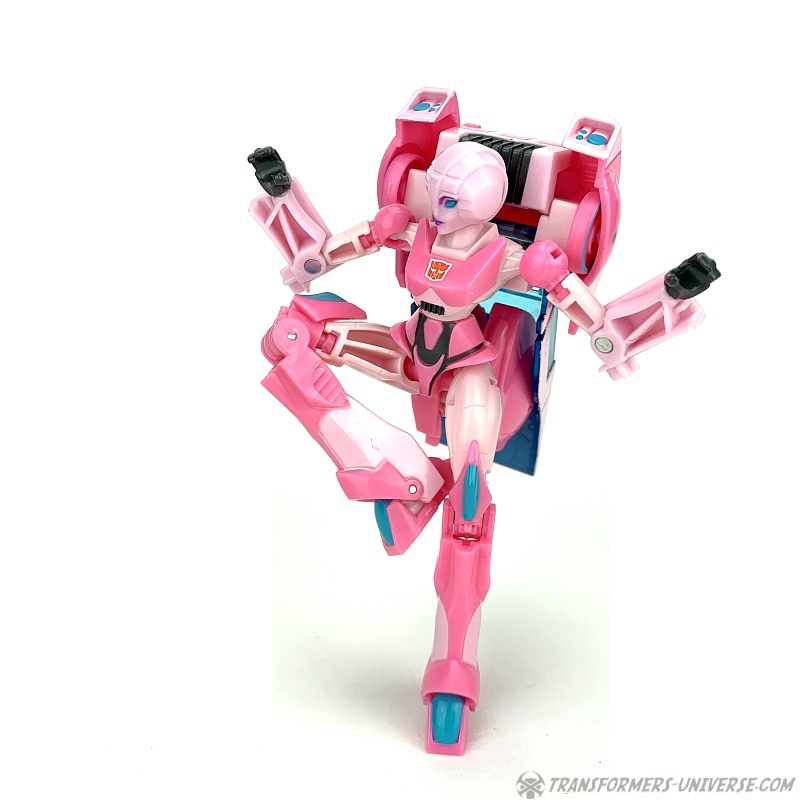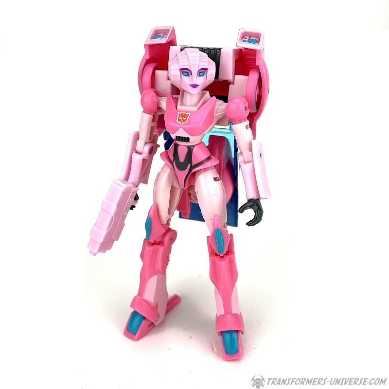 Deluxe Arcee (die einzige Arcee Figur in der Cyberverse Reihe neben einem kleinen Tiny Turbo Changer) ist vielleicht die beste Figur der gesamten Cyberverse Reihe, zumindest unter denen die mir bisher untergekommen sind. Sie sieht aus, wie sie soll; sie ist wunderbar beweglich; der riesige Rucksack schränkt sie praktisch nicht ein; und auch wenn ihr Fahrzeugmodus jetzt nicht gerade eine Revolution ist, funktioniert er einwandfrei und ist vorbildgetreu. Klar, wäre sie eine Figur aus einer Sammlerreihe, hätte ich vielleicht noch was zu beanstanden, aber für eine Figur aus einer Kinderreihe ist sie einfach genial. Somit klar allen Arcee und Cyberverse Fans empfohlen.