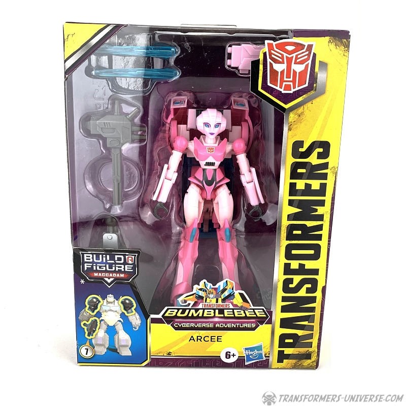 Randnotiz: Arcee hat Teile der Maccadam Build-a-Figure dabei, die Schultern und die Waffe. Bei späteren Releases der Figur waren diese Teile nicht mehr vorhanden.
