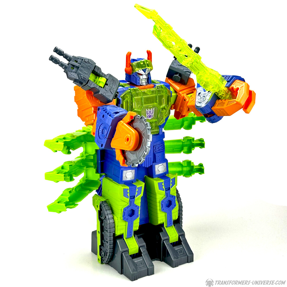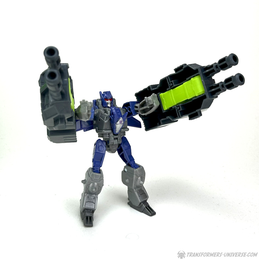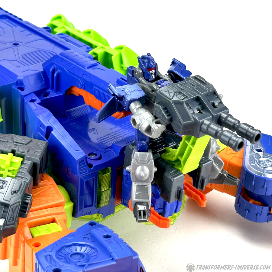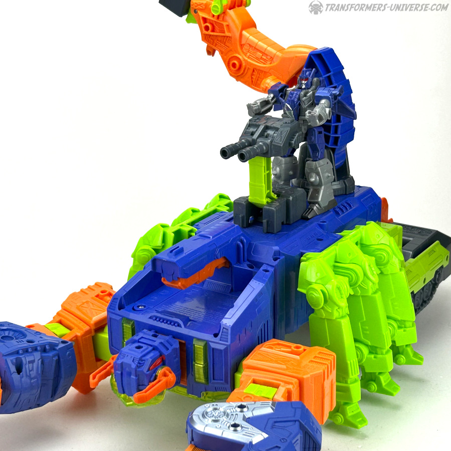 Natürlich kann man auch hier kleinere Figuren mit der Klaue packen und die Doppelgeschütze an diversen Stellen von Scorpokok anbringen, wo dann kleinere Figuren als Kanoniere dienen. Jede Menge interaktiver Spaß auch hier, nicht nur im Robotermodus. Somit unterm Strich: eine sehr einfache Transformation, klar, aber die Figur (also eigentlich das Playset) macht hier genauso viel Spaß wie im Robotermodus.