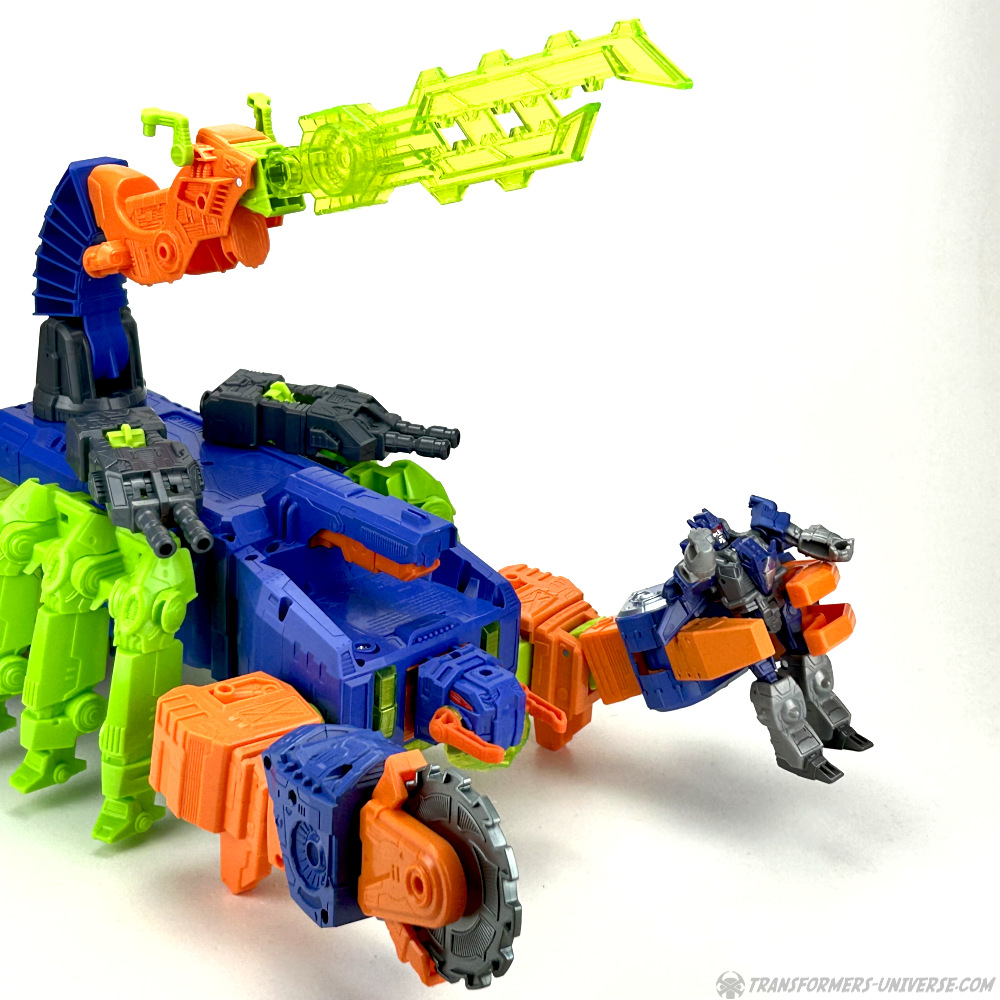 Ich habe Earthrise Scorponok ja damals ausgelassen und wir zwar sein Retool, Black Zarak, geholt, aber nach kurzer Zeit wieder verkauft. Somit erscheint der Kauf von Cyberworld Scorponok anfangs etwas kontraintuitiv, aber ich kann jetzt schon sagen, dass ich mit dieser Figur in der kurzen Zeit, die ich sie habe, schon mehr Spaß hatte als mit allen Titans, die ich besitze. Er ist natürlich kein Titan. Er ist sicherlich auch keine Sammlerfigur. Er ist ein Spielzeug, das Spaß machen und mit den anderen Figuren der Reihe interagieren soll. Hatte Earthrise Scorponok ein Klauen-Bike? Nein? Dann verschwendet nicht meine Zeit mit ihm.