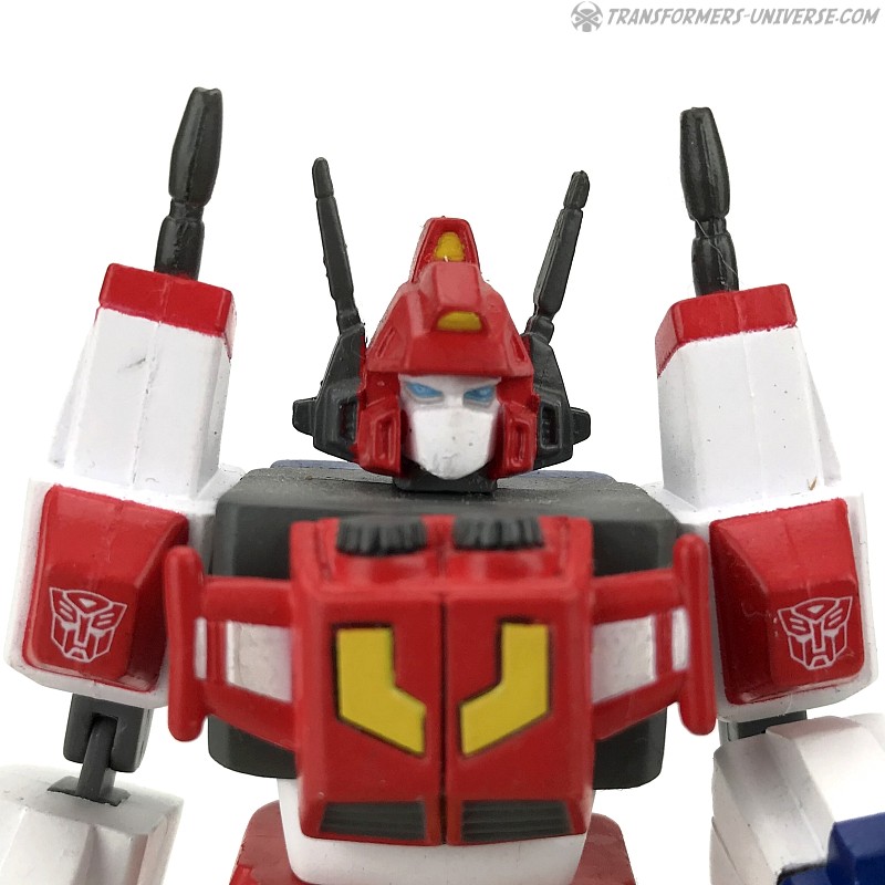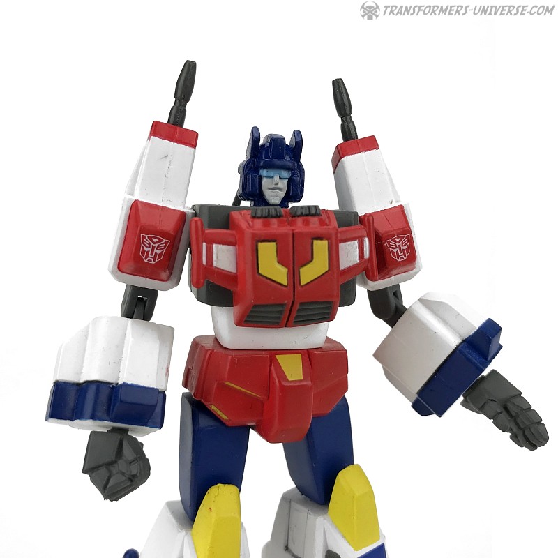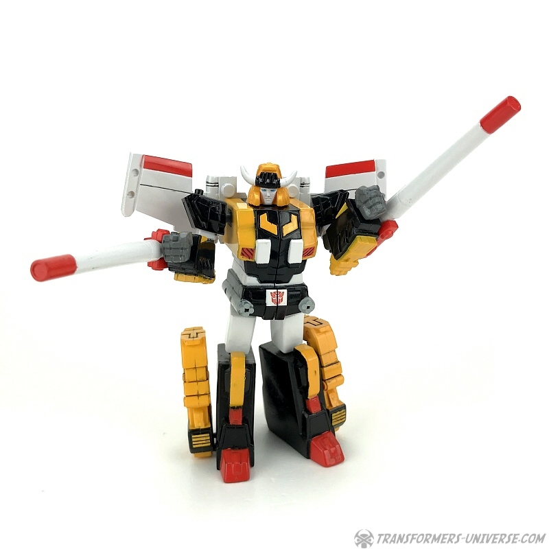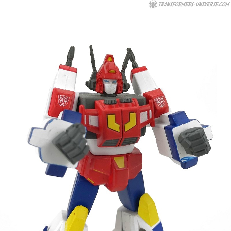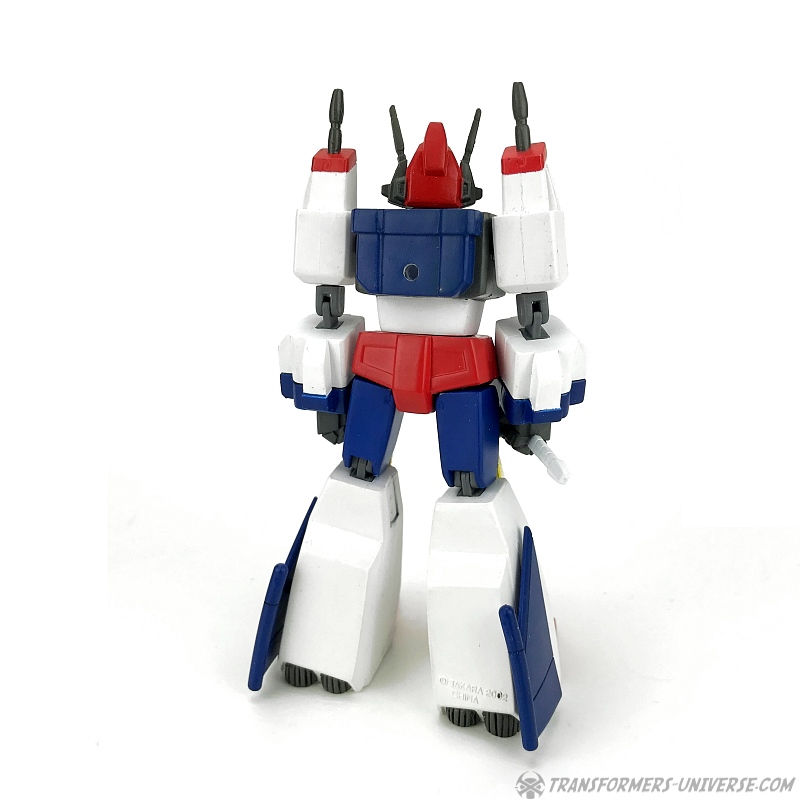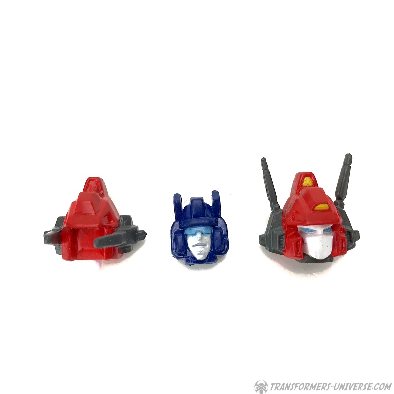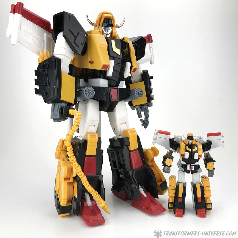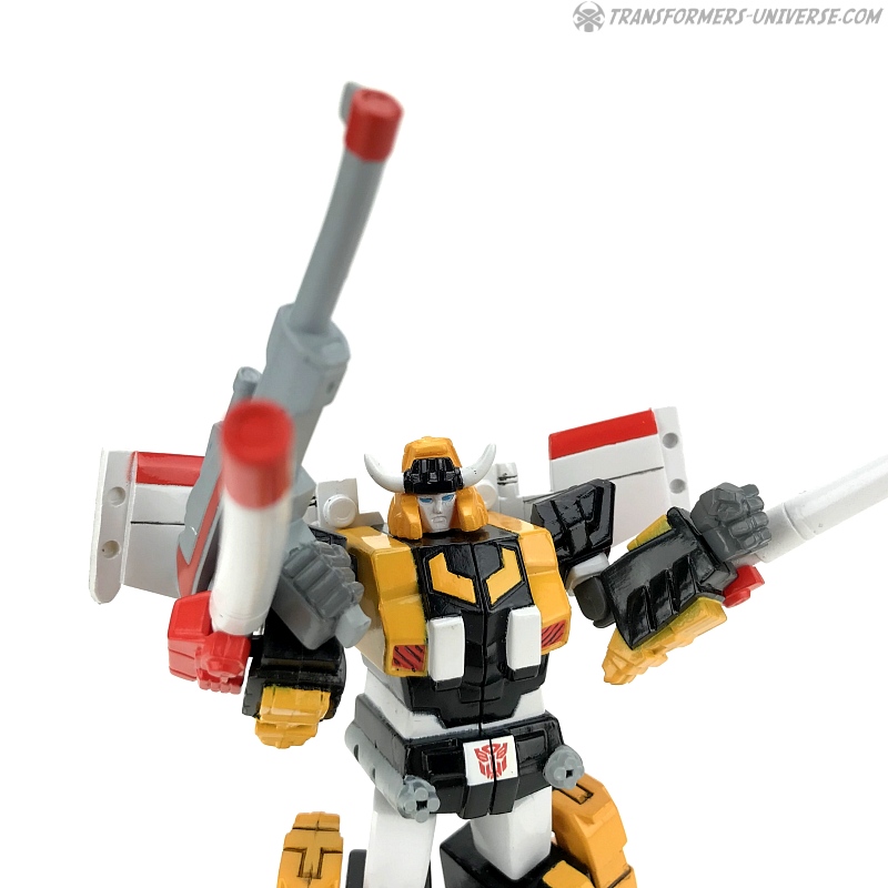 Bemerkungen: Takaras MegaSCF Reihe bestand aus klassischen G1 Charakteren, sowie solchen aus der damals aktuellen Armada / Micron Legend Reihe. Star Saber und Victory Leo waren die einzigen Vertreter der Takara G1 Cartoons in der Reihe (die gerade mal 15 Figuren umfasste, ein Drittel davon hießen Convoy) und die einzigen, die sich kombinieren konnten. Wie sind diese beiden Kerlchen in meine Sammlung gekommen? Eigentlich war es ein Missverständnis. Damals im Jahr 2006 war ich noch recht neu in der Transformers Sammlerszene und erspähte diese beiden auf dem Tisch eines Händlers auf der Auto Assembly in England. Da ich mich auf der japanischen Seite der Transformers noch nicht gut auskannte, hielt ich sie für die Robot Masters Versionen der Charaktere, die sich ja transformieren konnten (und für den Preis ein absolutes Schnäppchen gewesen wären). Erst später im Hotelzimmer merkte ich, dass das hier nicht-transformierbare Figuren waren, aber da war es schon zu spät.