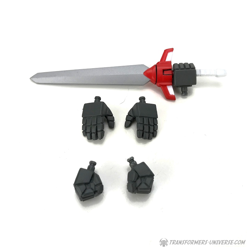 Robotermodus: Die Figuren der MegaSCF Reihe waren etwa so groß wie Legends-Klasse Figuren (oder kleine Deluxe Figuren nach heutigem Maßstab) und waren für die damalige Zeit (2002 bis 2003) ziemlich gut beweglich, aber natürlich ohne Alternativmodi. Fangen wir mit Star Saber an. Die Figur hat sehr große Ähnlichkeit mit dem animierten Cartoon Charakter (mehr als das originale Spielzeug) und hat als Waffe sein klassisches Schwert dabei. Star Saber kann Knie und Ellbogen beugen, sich in der Hüfte drehen, und die Beine an der Hüfte sind auch ein wenig beweglich, wenn auch nicht viel. Er hat aber eine Reihe auswechselbarer Hände dabei. Neben der Hand, die fest mit dem Griff des Schwerts verbunden ist, haben wir noch zwei Fäuste und zwei offene Hände.
