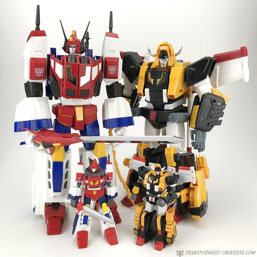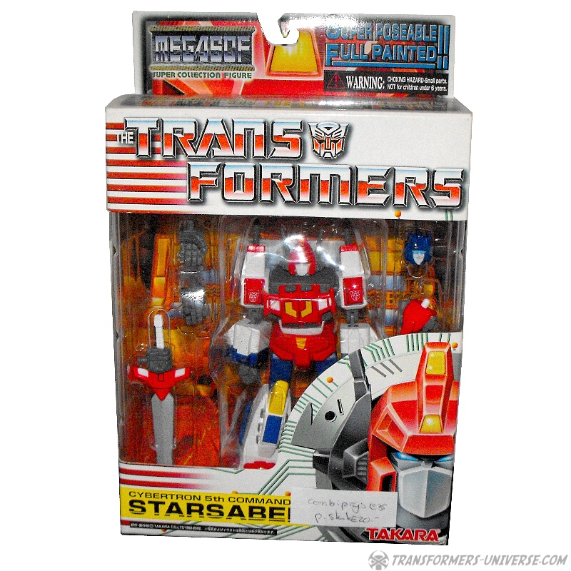 Vorwort: Lange vor Yolopark, FlameToys und Three Zero hatten wir bereits nicht-transformierbare Transformers Figuren. Nein, ich rede jetzt nicht von den Action Masters, sondern von den Mega Super Collection Figures, kurz MegaSCF, einer kurzlebigen Reihe von Takara mit dem vermutlich ungewollt komischen Slogan “The Truth Who the Eyes Met Before!” (Die Wahrheit, die wir schon gesehen haben). And natürlich muss eine Sammler-orientierte Reihe von Takara auch Japans allerliebsten Transformers Homeboy dabei haben, den mächtigen Star Saber. Zusammen mit seinem Kumpel Victory Leo wird er zum allmächtigen Victory Saber. Also, los geht’s!