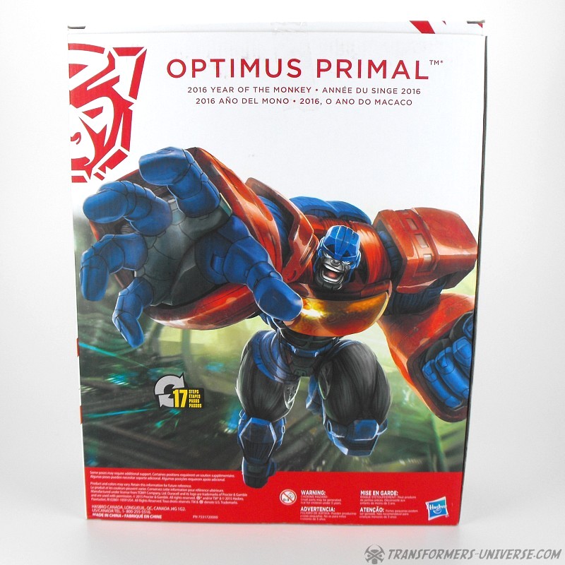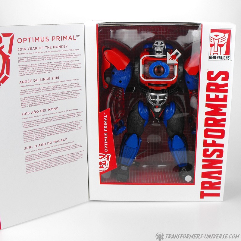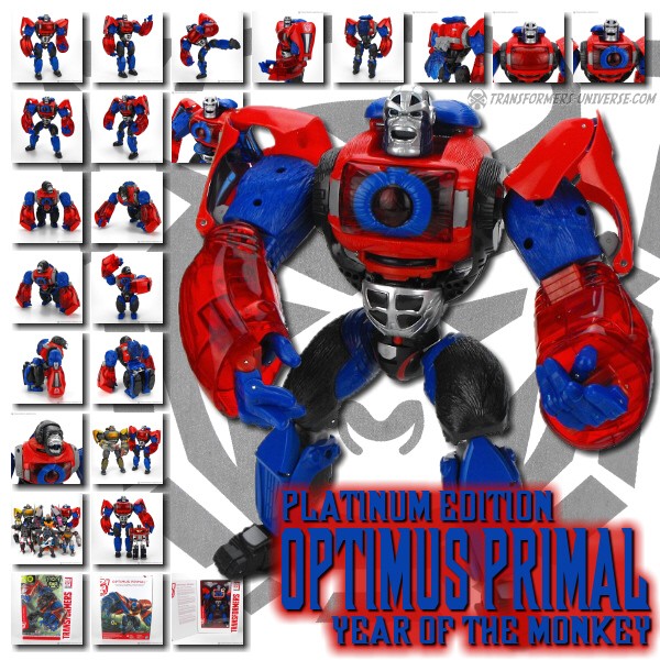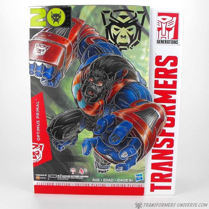 Bemerkungen: Wir nehmen also eine 15 Jahre alte Optimus Primal Figur, bemalen Sie neu mit dem klassischen Optimus Prime Farben rot-blau und bringen ihn dann als Platinum Edition für das Jahr des Affen neu raus, obwohl er streng genommen ja kein Affe sondern ein Primat ist. Okay, warum nicht. Auf jeden Fall ist die ursprüngliche Version dieser Figur hier die beste Darstellung von Beast Machines Optimus Primal überhaupt und auch wenn die neuen Farben ihr nicht so wirklich toll stehen (meiner Meinung nach) ist sie immer noch eine ziemlich gute Figur. Wer das Original in die Finger kriegen kann, dem würde ich dann doch eher dazu raten, einfach weil ich die Farben besser finde, aber so oder so: eine gute Wahl für alle Fans von Optimus Primal und Transformers mit Biestmodus.