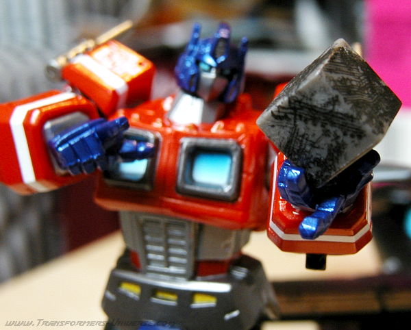 Es klingt vielleicht jetzt so, als wäre dies doch keine gute Umsetzung von Optimus, aber die kleinen Fehler werden durch andere Faktoren wieder überspielt. So ist dieser Prime durch seine vielen Gelenke optimal dafür geeignet ihn in verscheiden Posen zu setzen. Und jede Pose wird durch Austausch der Hände immer wieder auf eine andere Art interessant. Auch finde ich sehr positiv, dass die Figur trotz ihrer geringen Größe (12 cm) sehr viele Details hat und bei jedem neuen Anschauen gerät man doch immer wieder ins Schwärmen.