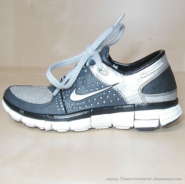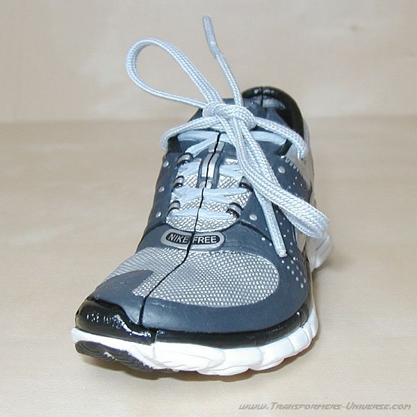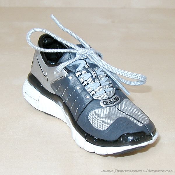 Alternativmodus: Megatron transformiert in einen Nike Free 7.0 Sneaker. Der Schuh sieht ziemlich realistisch aus, so sehr dass man fast überrascht ist, wenn man beim Anfassen hartes Plastik anstatt weicherem Material spürt. Er sieht wirklich sehr lebensecht aus, bis hin zu echten Schnürsenkeln. Der Schuh ist natürlich deutlich zu klein, selbst ein kleines Kind hätte Probleme ihn anzuziehen (wenn man ihn denn anziehen könnte), aber für sowas haben die Transformers ja Mass-Shifting-Technologie. Alles in allem ein toll aussehender Alternativmodus, wenn man sich auch fragen muss, welchen Vorteil es bringt sich in einen Schuh zu verwandeln.