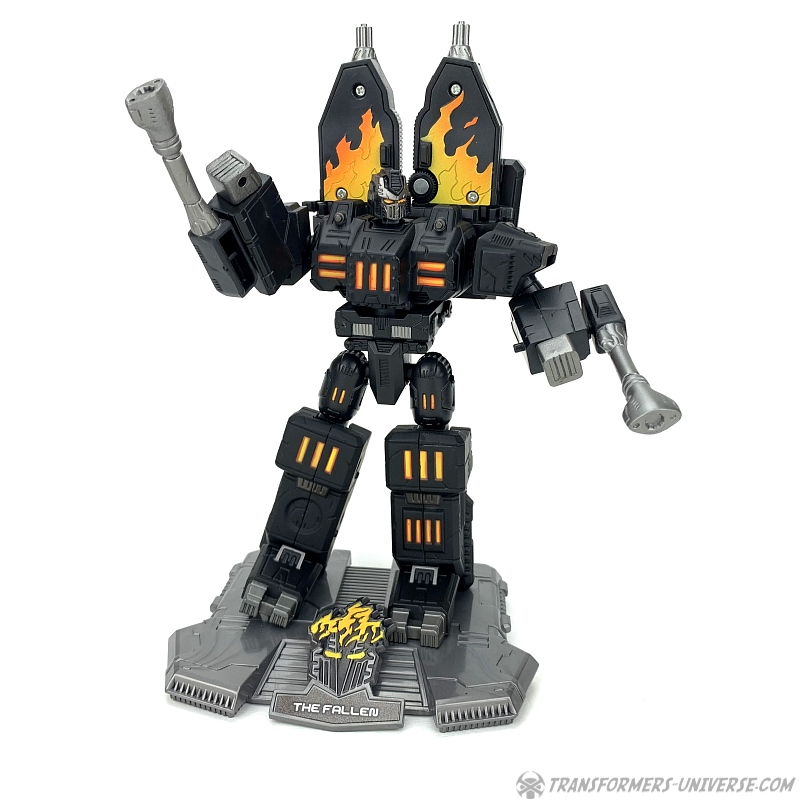 Vorwort: Die Titanium Reihe transformierender Roboter war schon eine seltsame Serie. Lange vor Thrilling 30, Legacy, oder anderen Hommage-lastigen Spielzeugreihen die man so kennt, hat Titanium eine wilde Mischung von Charakteren aus verschiedenen Kontinuitäten rausgebracht. Darunter auch die einzigen offiziellen Figuren, die auf der War Within Reihe von Dreamwave Comics basieren. Und eine davon ist die allererste Figur von The Fallen. Bringt er euer Feuer zum Lodern? Los geht’s!