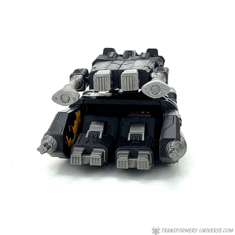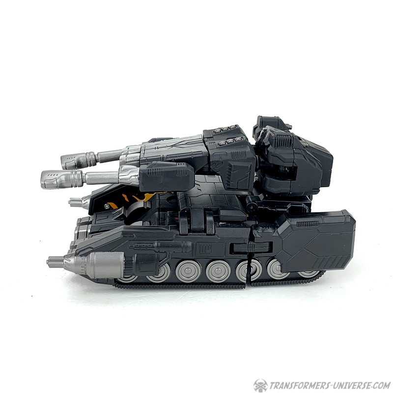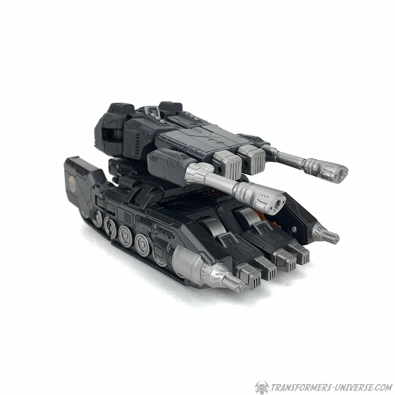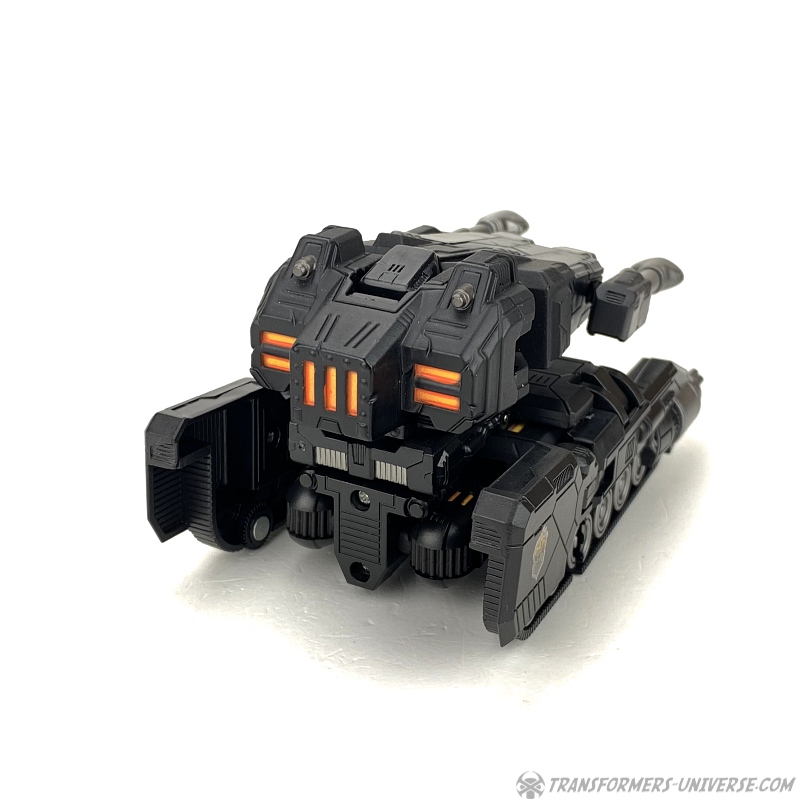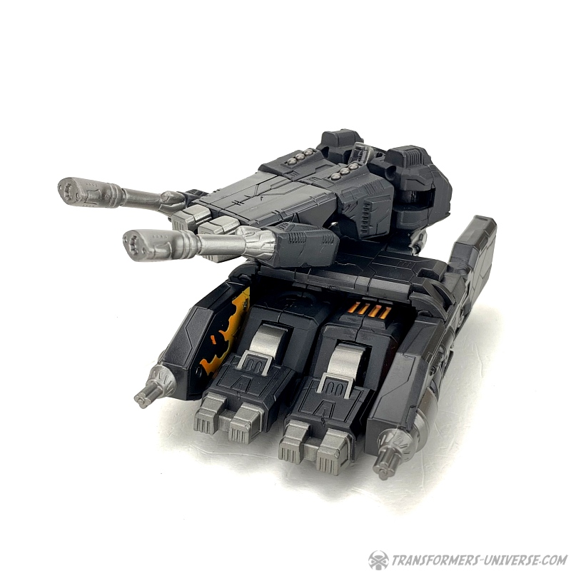 Trotzdem haben wir hier einen funktionsfähigen Panzer mit drehbarem Geschützturm und nach oben ausrichtbaren Kanonen. Okay, aus bestimmten Winkeln erkennt man die Roboterfäuste vorne am Geschützturm, aber das kann man ignorieren. Unterm Strich also geht The Fallen als Panzer okay, auch wenn die Figur nicht wirklich einen Altmode gebraucht hat.