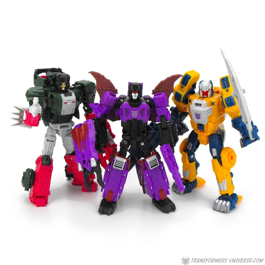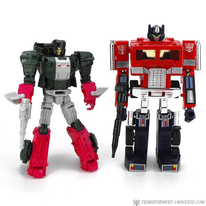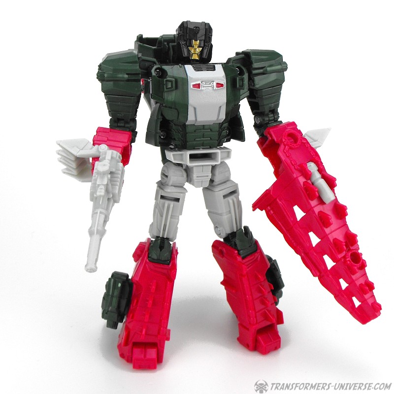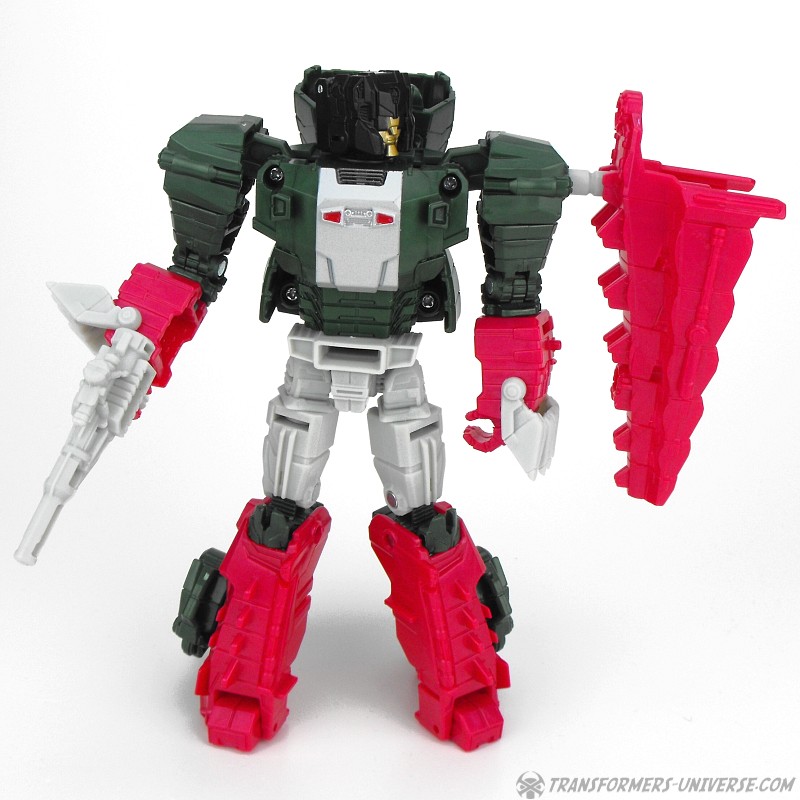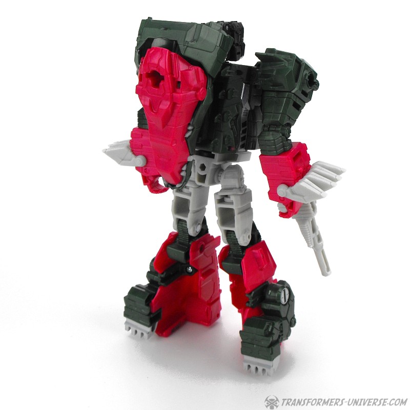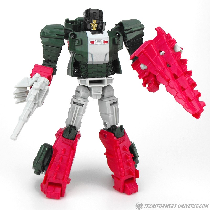 Partner: Skullsmashers Titan Master Partner darf den Namen seines G1 Vorgängers behalten, Grax. Grax ist ein typischer Titan Master mit Kugelgelenk-Schultern und verbundenen Beinen, so gut und beweglich wie man es von einer Figur dieser Größe halt erwarten kann. Er ist natürlich mit allen anderen Titans Return Headmasters kompatibel. Interessanterweise ist bei ihm trotz einer gelungenen Ähnlichkeit mit seinem G1 Vorgänger ein Farbtausch vorgenommen worden. Er hat einen grünen Torso und schwarze Gliedmaßen, bei G1 Grax war es gerade andersrum. Insgesamt also eine gute, durchschnittliche Titan Master Figur.
