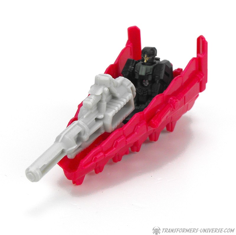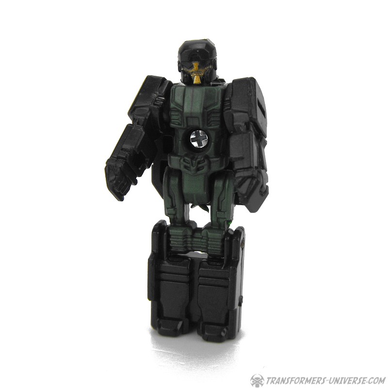 Bemerkungen: Skullcruncher war einer der originalen 1987er Headmaster, hatte aber sowohl im Cartoon als auch in den Marvel Comics nur eine sehr kleine Rolle. In der japanischen Headmaster Serie hatte er eine größere Präsenz, unter anderem als er zusammen mit den anderen Destron Headmasters den Planeten Seibertron (der japanische Name von Cybertron) in die Luft jagte. In jüngerer Zeit tauchte er dann in den IDW Comics auf, wo er nach dem Ende des Krieges eine Karriere als Stand-Up Comedian unter dem Künstlernamen „the Self-Hating Decepticon“ (der selbst-hassende Decepticon) begann. Auf seiner „No Hard Feelings“ Tour (in etwa „Nichts für Ungut“) machte er Witze über Megatrons Wechsel zu den Autobots und das Infiltrationsprotokoll. Scheinbar machte ihn das zum Milliardär.