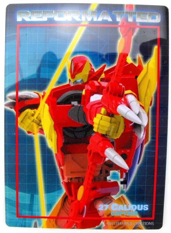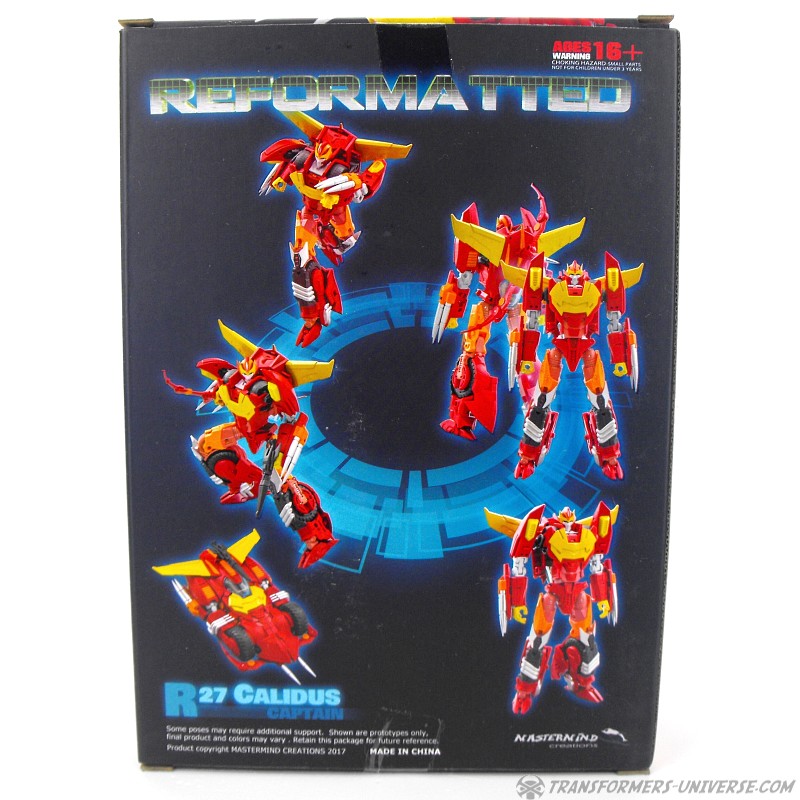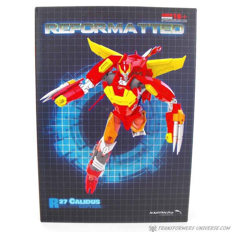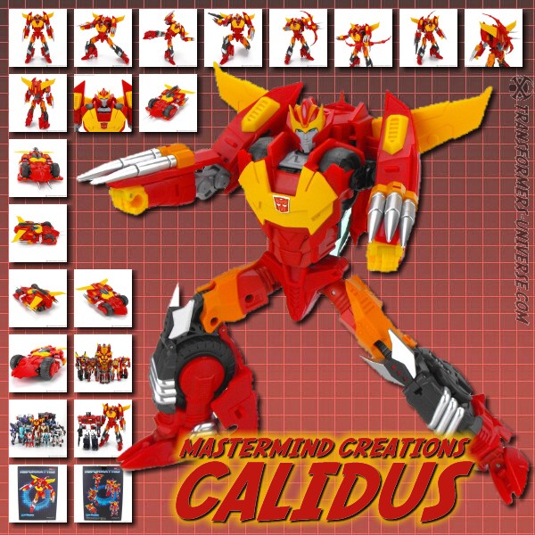 Vorwort: Diese Figur hier ist kein Produkt von Hasbro oder Takara-Tomy und somit kein offizieller Transformer. Sie stammt vom Drittanbieter Mastermind Creations und soll natürlich Hot Rod / Rodimus darstellen, genauer gesagt die Version von Rodimus aus den IDW Comicserien More than Meets the Eye / Lost Light. Aus rechtlichen Gründen darf er halt nicht so heißen. Stattdessen heißt er Calidus, was lateinisch ist für heiß, feurig, leidenschaftlich (oder auch „noch frisch“).