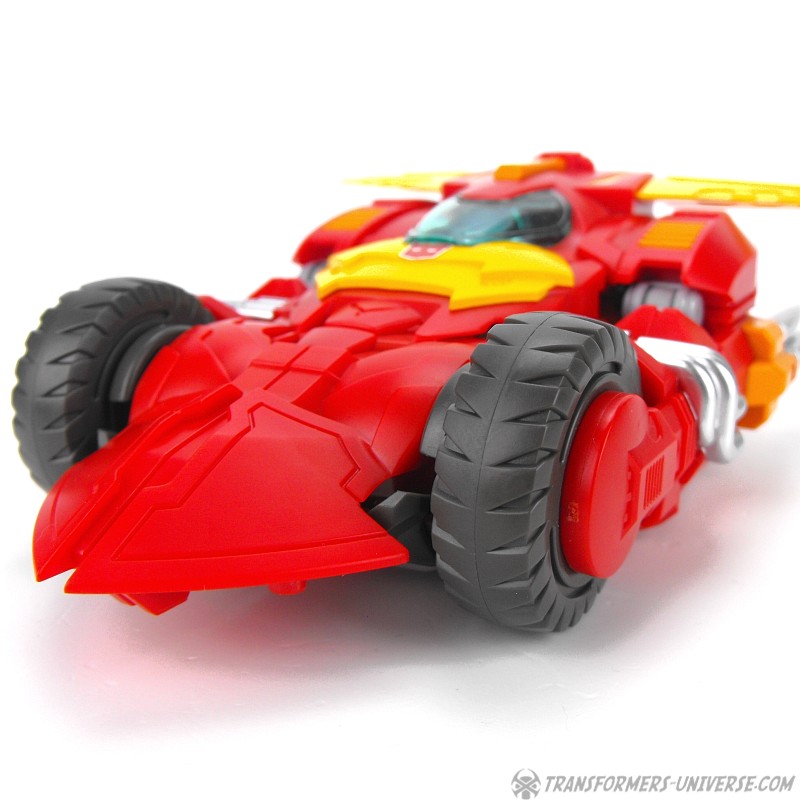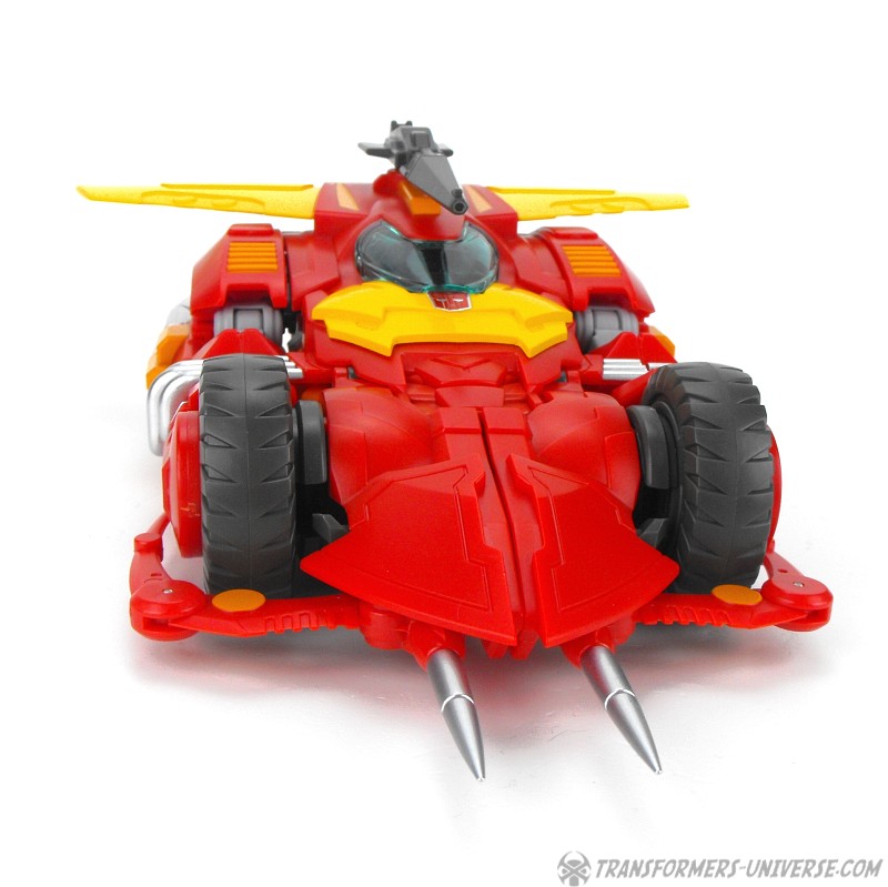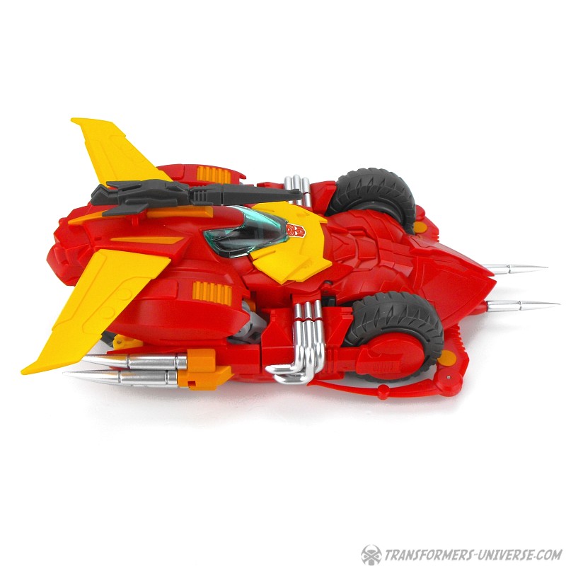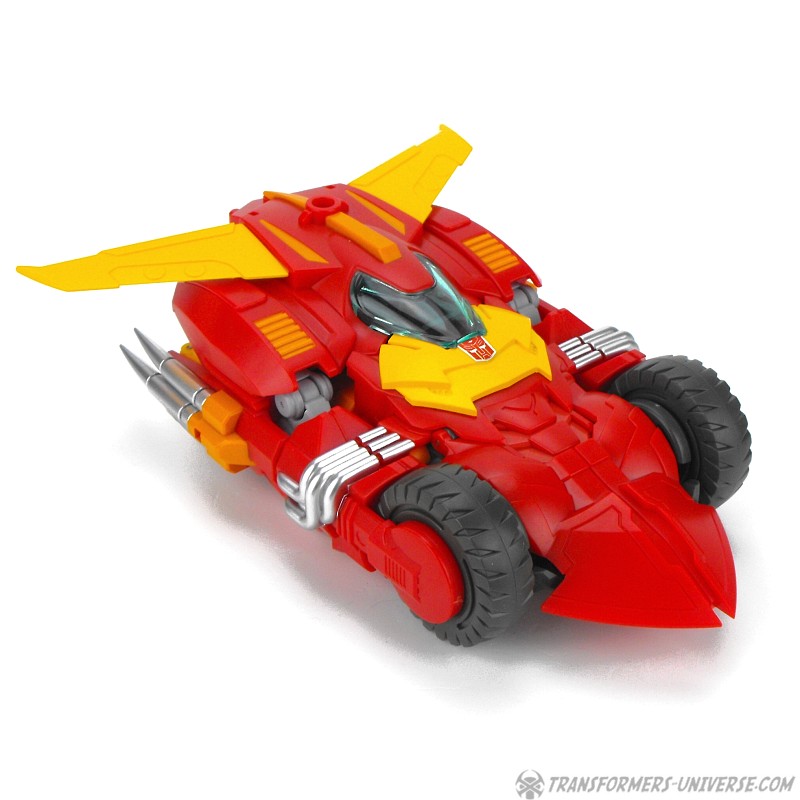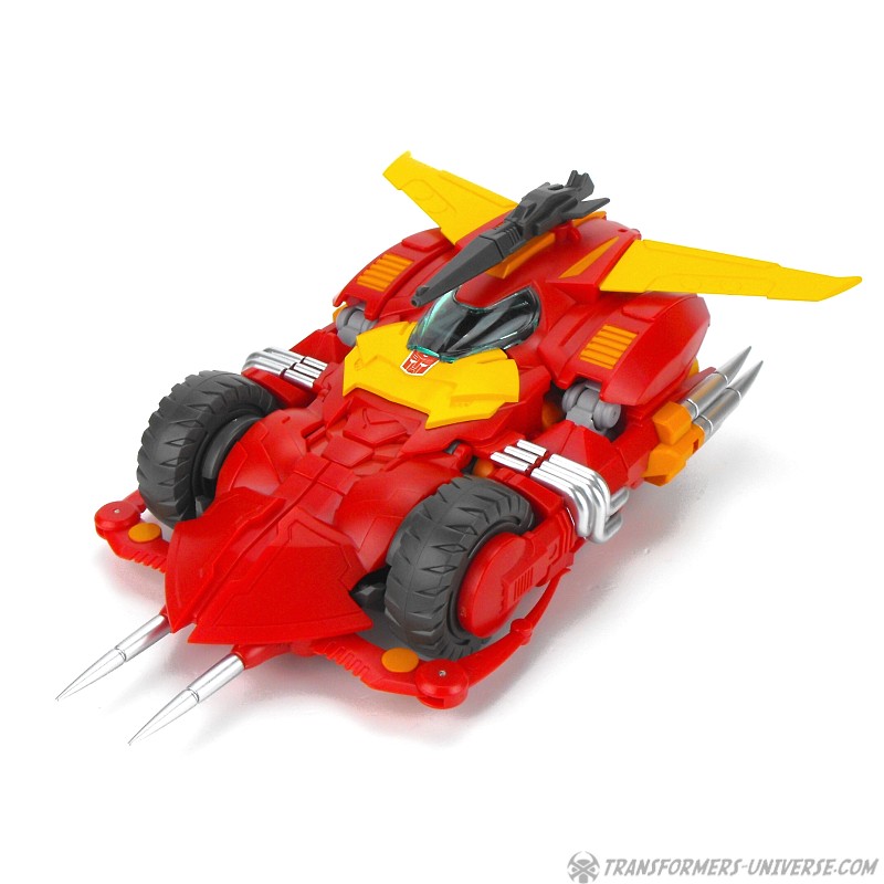 Bemerkungen: Rodimus aus den IDW Comics ist ein etwas anderer Charakter als der heißblütige junge Rowdy aus dem G1 Cartoon, der gegen eigenen Willen zum Anführer der Autobots wurde. IDW Rodimus ist immer noch ein heißblütiger Rowdy, aber außerdem ein mehr als gewillter Anführer mit viel Charisma, einer extrem kurzen Aufmerksamkeitsspanne, jeder Menge Selbstvertrauen und einem massiven Ego (er baute ein Shuttle in Form seines Kopfes und verleiht Medaillen, die ihm selbst nachempfunden sind). Trotzdem schafft er es ein sehr liebenswerter Charakter zu sein.