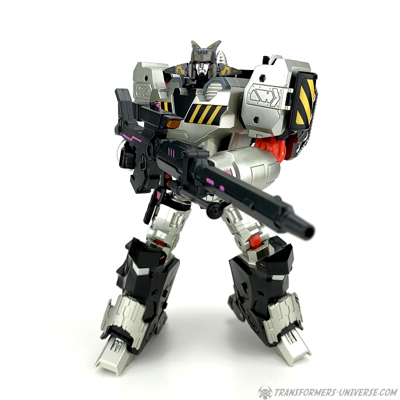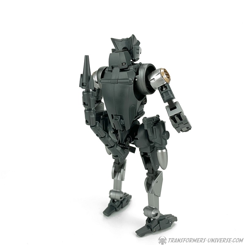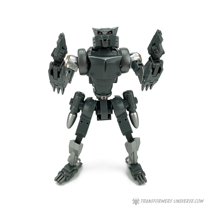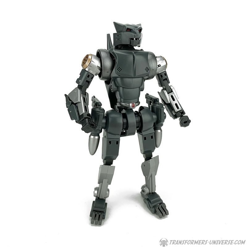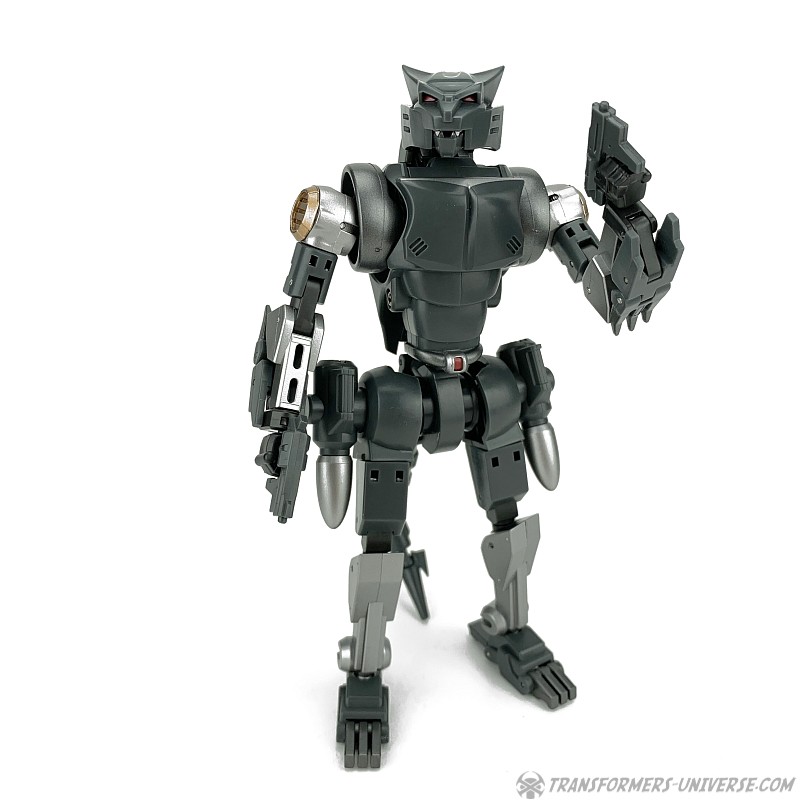 Robotermodus: Wo sich G1 Ravage vom Jaguar zur Kassette verwandelte, verwandelt sich MMC Jaguar from Jaguar in einen Roboter. Und mit Verwandeln meine ich hier, er steht auf. Okay, ein wenig Transformation gibt es schon, so werden die Vorderfüße zu Fäusten, der Hals wird etwas verändert, die Hinterbeine werden gerade gezogen, aber es ist insgesamt doch eine recht minimalistische Transformation. Jaguar stellt sich eigentlich nur auf die Hinterbeine und fertig.