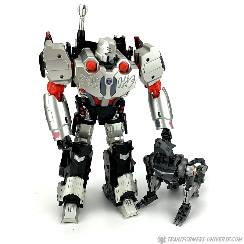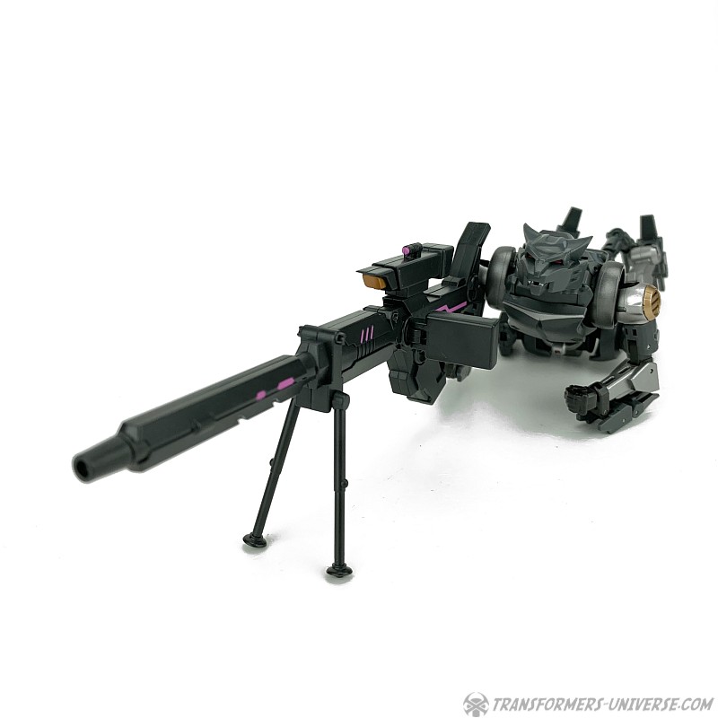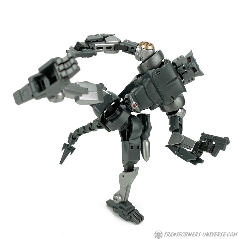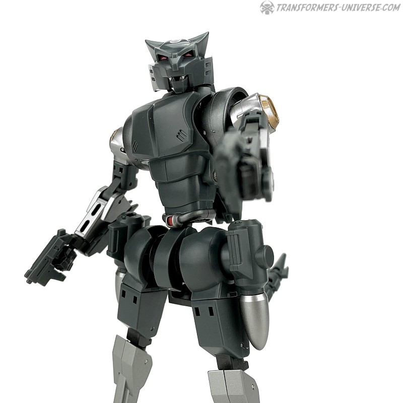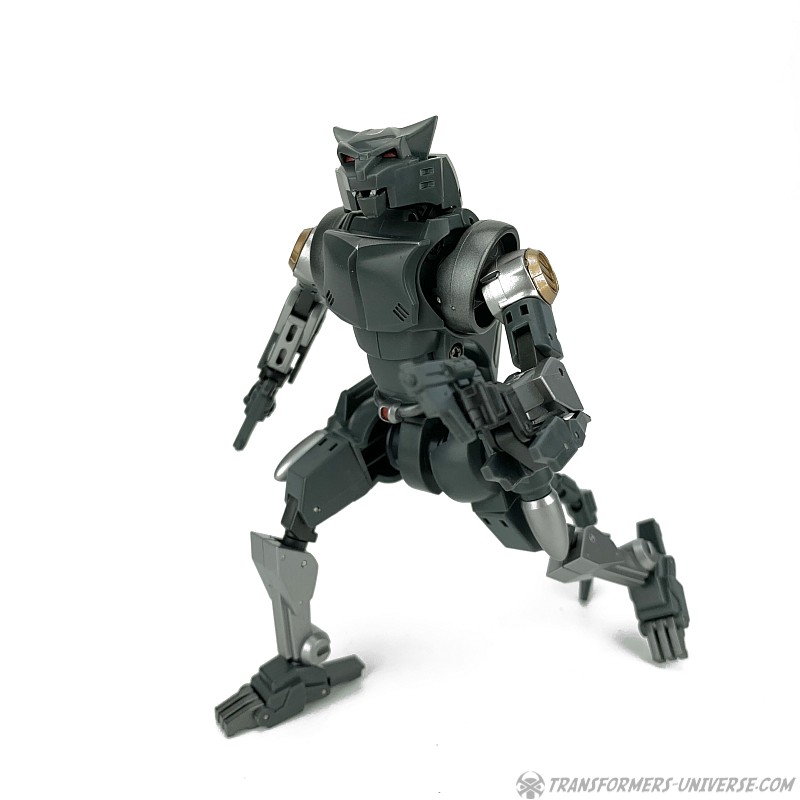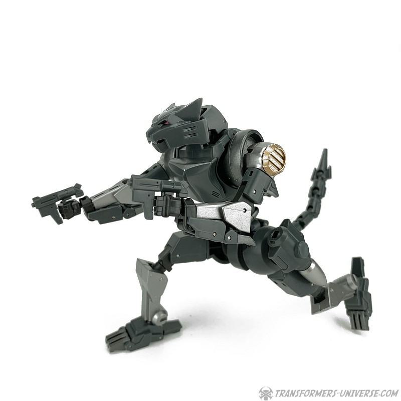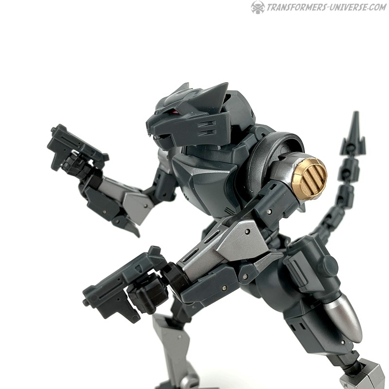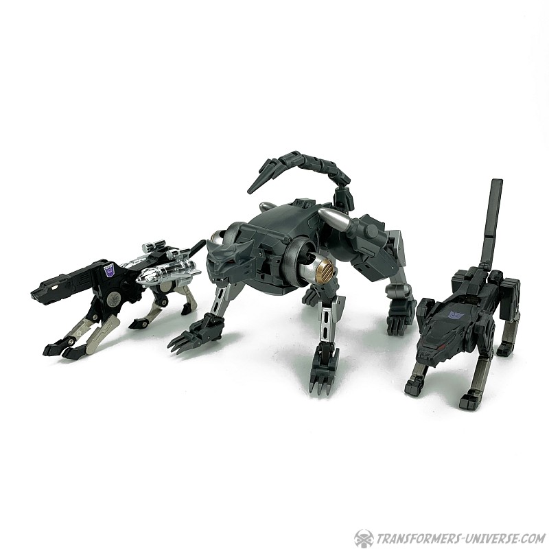 Biestmodus: Die meisten Versionen von Ravage hatten niemals einen humanoiden Robotermodus, sein Primärmodus war meistens der eines Jaguars (oder besser gesagt eine generische schwarze Roboterkatze). Der Biestmodus der MMC Figur ist in etwa Deluxe-groß und präsentiert sich als sehr bewegliche Roboterkatze. Alle vier Beine sind voll beweglich, der Kopf sitzt auf einem mehrgelenkigen Hals, das Maul lässt sich öffnen, es gibt ein Hüftgelenk, und der Schwanz besteht aus einzelnen Kugelgelenken. Somit hier keinerlei Beschwerden, Jaguar ist wunderbar beweglich.