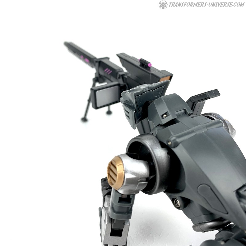 Zubehör: In den IDW Comics hat Ravage viel mit Megatron auf der Lost Light abgehangen, insofern passt es ja irgendwie, dass er einige Zusatzteile für Tyrantron dabei hat, MMCs Interpretation von IDW Megatron. Da wäre zum einen natürlich das große Scharfschützengewehr, was sowohl von Jaguar als auch Tyrantron genutzt werden kann. Außerdem gibt es Füllstücke für die Löcher an Tyrantrons Armen, wenn dieser mal nicht seine große Fusionskanone rechts oder links eingestöpselt hat.