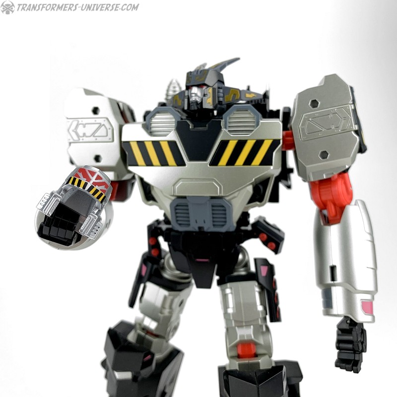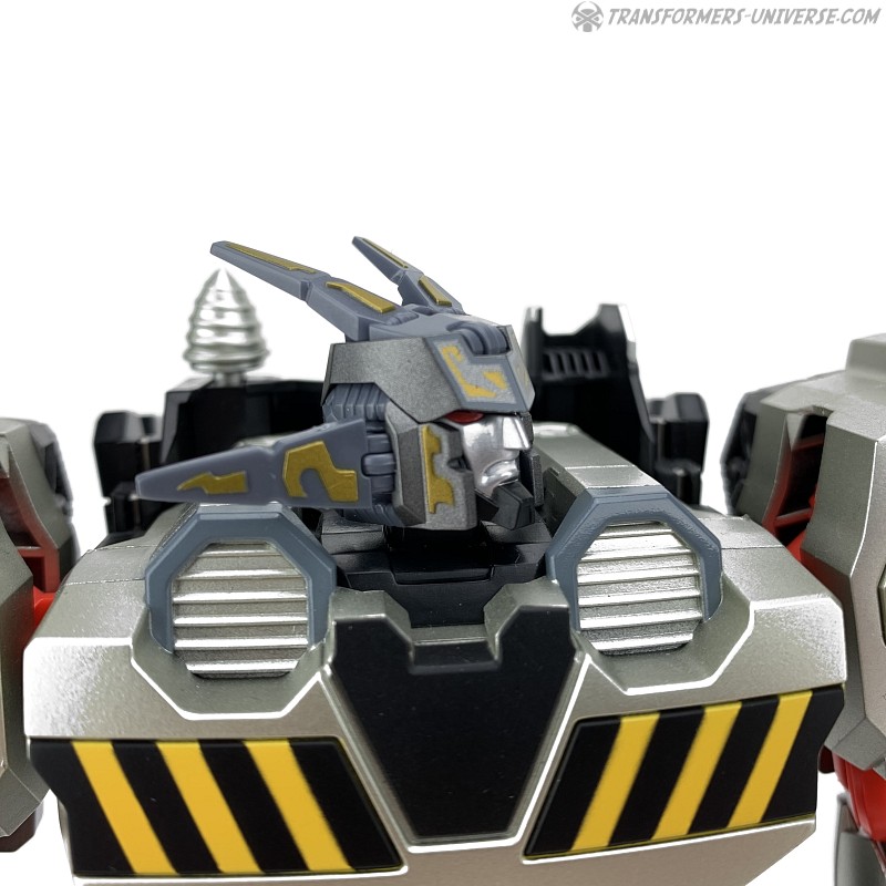 Das wichtigste Zubehörteil allerdings ist ein neuer Kopf für Tyrantron, um die Szene nachzustellen, wo Megatron in den IDW Comics mal seinen bekannten Eimer-Helm abgenommen hat, um die Walla-Walla-Mähne darunter zum Vorschein kommen zu lassen. Das ist was so schräges, das es irgendwie schon wieder cool ist. Habe von einigen Leuten gehört, die das Set eigentlich wenn nur für den neuen Kopf haben würden wollen. Leider passt der ebenfalls beiliegende Eimer-Helm nicht über das wallende Haar drüber, aber man kann immerhin Tyrantron den Helm in die Hand geben, damit es so aussieht als hätte er ihn gerade mal abgesetzt, um die kybernetische Mähne zu lüften. Ja, wirklich schräg, aber cool. Der Kopf alleine ist sicherlich nicht das ganze Set wert, wenn man sonst nichts draus will, aber es ist auf jeden Fall ein Bonus.