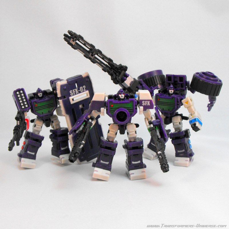 Robotermodus: Okay, sprechen wir als erstes über den einen großen Makel dieses Figurensets. Es ist zu klein. Die einzelnen Roboter sind ungefähr so groß wie Figuren der Legends-Klasse, kaum mehr als das. Eine Vergrößerung um mal min. 50% hätte für mich hier einiges verbessert.