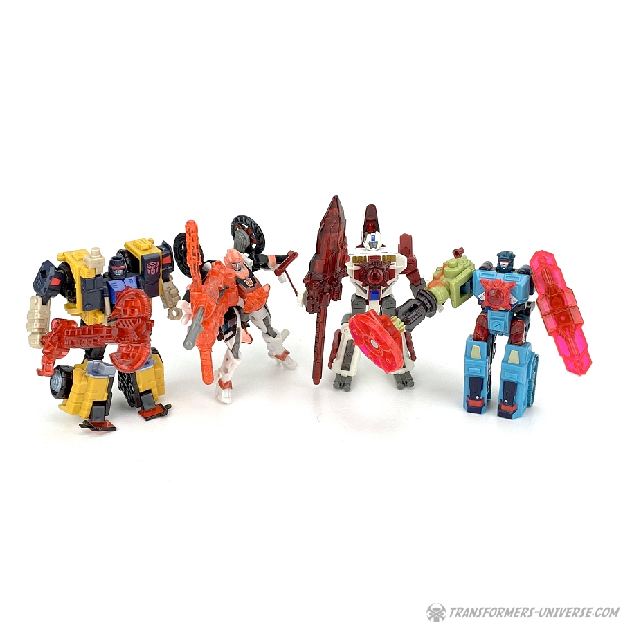 Bemerkungen: Im Energon Cartoon (und auch den Comics) waren die Omnicons spezielle Autobots, die für den Abbau von rohem Energon und dessen Raffinierung zu Energonsternen und -waffen verantwortlich waren. Strongarm (oder besser gesagt, die vielen, vielen Strongarms) kamen im gesamten Cartoon vor, wann immer Energon gebraucht oder gefunden wurde. In den Comics gab es nur einen einzigen Strongarm, Mitglied eines von Overrun erschaffenen Autobot Teams, welches, ihr erratet es, sich um Energon kümmern sollte.