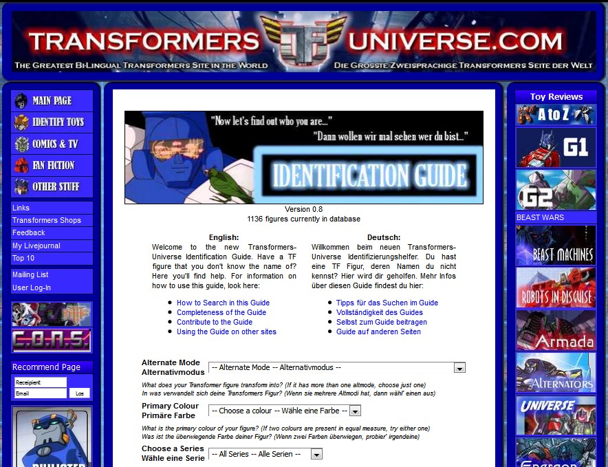 Over the years the site changed a lot, of course (see the pictures below), and I added quite a few functionalities, too, such as my ID Guide and Toy database (came online in 2009).