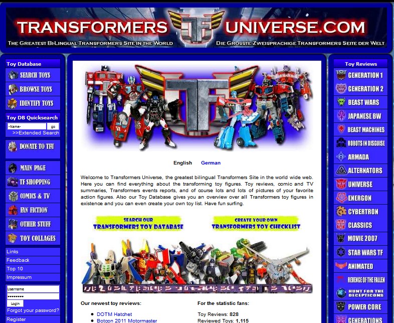 - As mentioned above, I added numerous functionalities in 2009, which have since grown into a Transformers toy database with over 9,000 figures inside it.