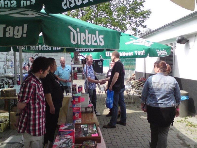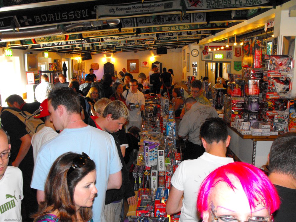 Since no plan ever survives contact with the enemy, though, we got a piece of bad news just two days prior to the convention: we had planned to use Saturday for setting everything up, but were no informed that we wouldn’t be able to enter the location on that day, as none of the people running the place (the fan club of the local soccer club Borussia Moenchengladbach) would be present. Which meant that those members of the organization team living close by had to spend many hours on Friday evening, well into the night, to set up as much as possible. Let me take this opportunity to give a heart-felt and honest "well done!” to those courageous men and women.