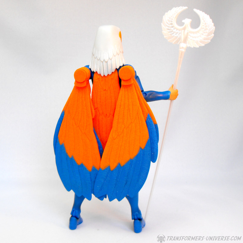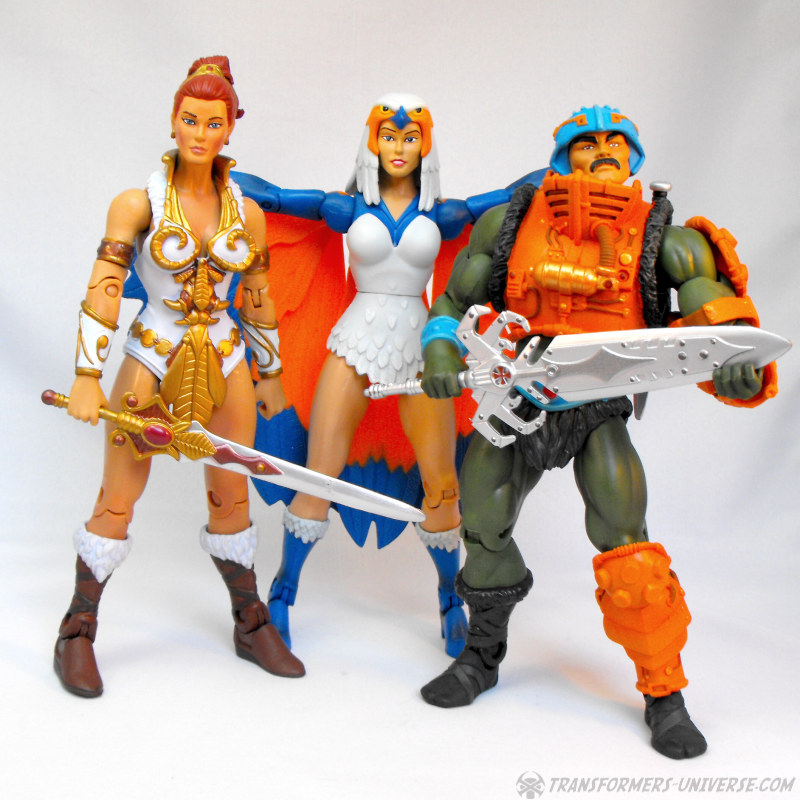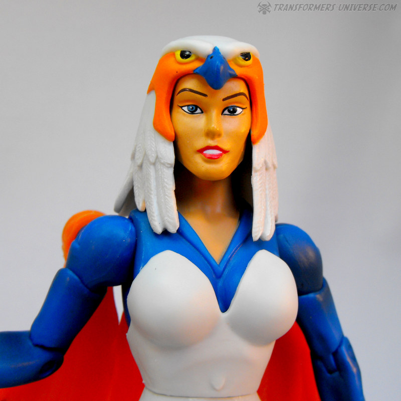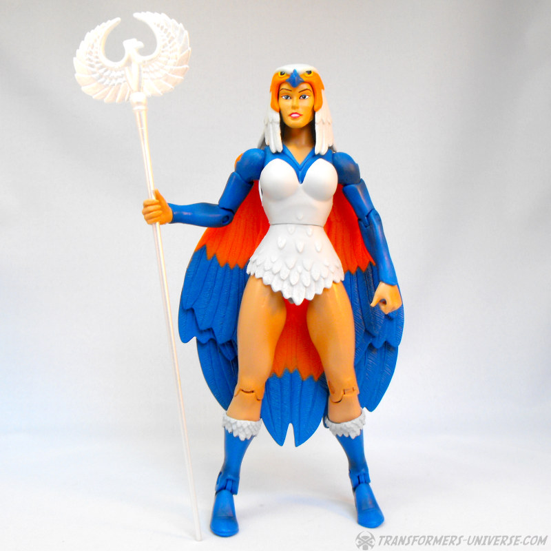 The Sorceress is pretty much the spitting image of her Filmation incarnation and a great update of the vintage figure, which was also patterned after the cartoon. She still has slide-out wings under her arms, but can move them independently. Articulation is standard for the Classics line, meaning pretty great. She carries a white staff as a weapon and comes with Zoar the Falcon, her alternate form, who wears the vintage toy's battle armor and comes with a stand, too.