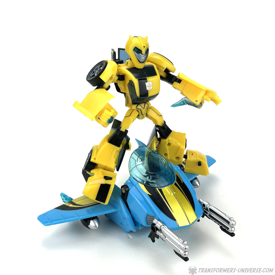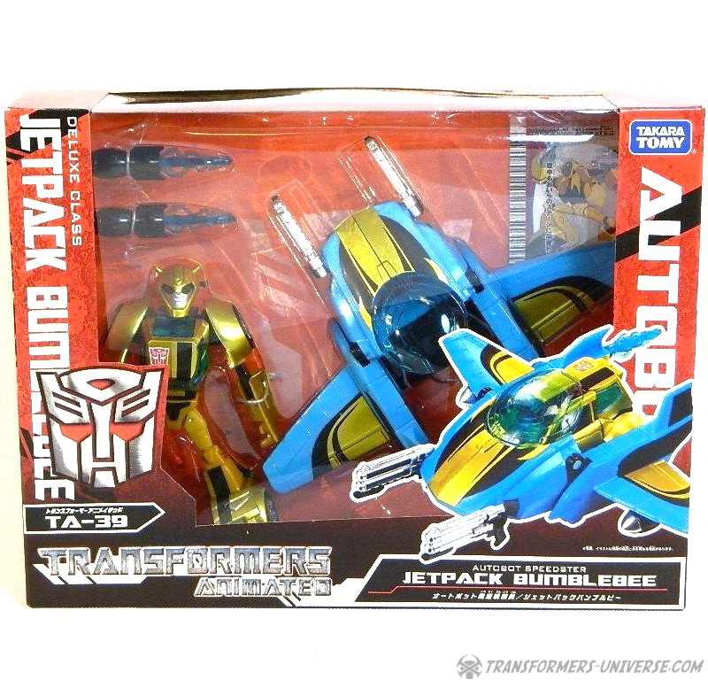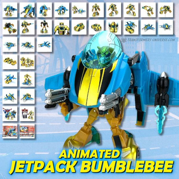 Prelude: Remember when Bumblebee wore that big blue jetpack in Animated and flew through the air? No? Me, neither, but we did get a toy from this nonexistent scene in the form of Jetpack Bumblebee, released only by Takara-Tomy. Also, Jetpack Bumblebee is one of the few Animated figures still missing from my collection, so many thanks to my buddy James for gifting him to me. Now, strap on your rocket boosters, prepare your stingers, and let’s say go!