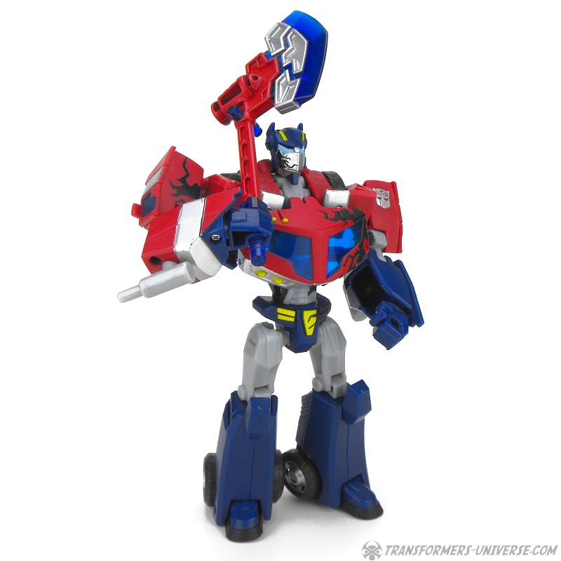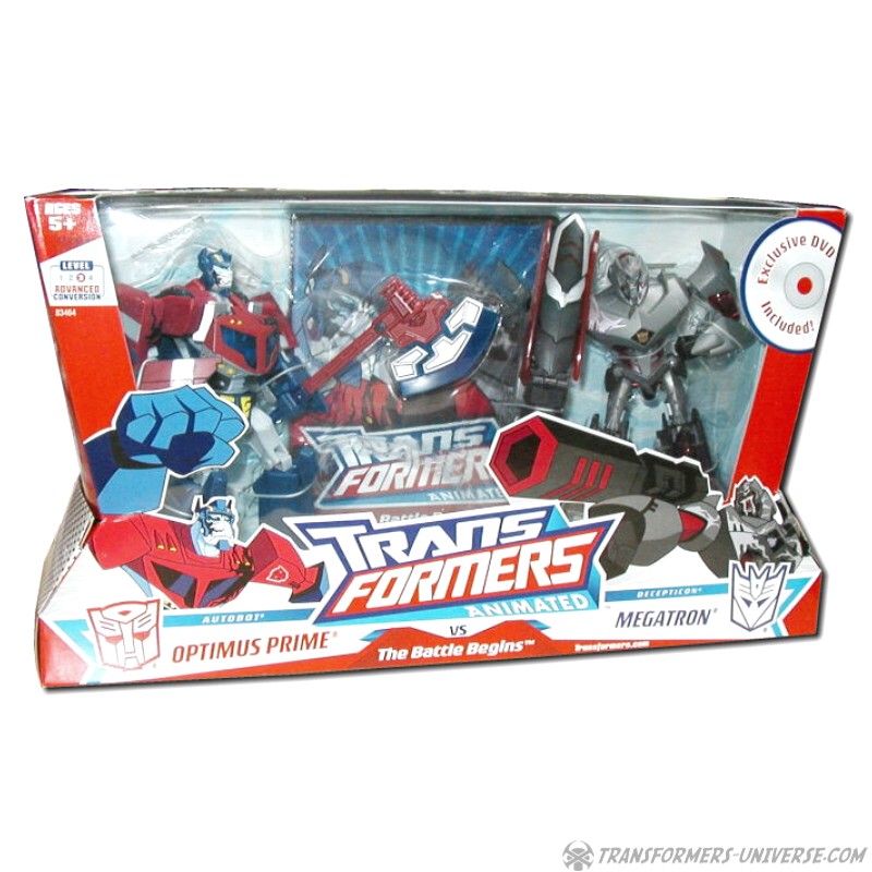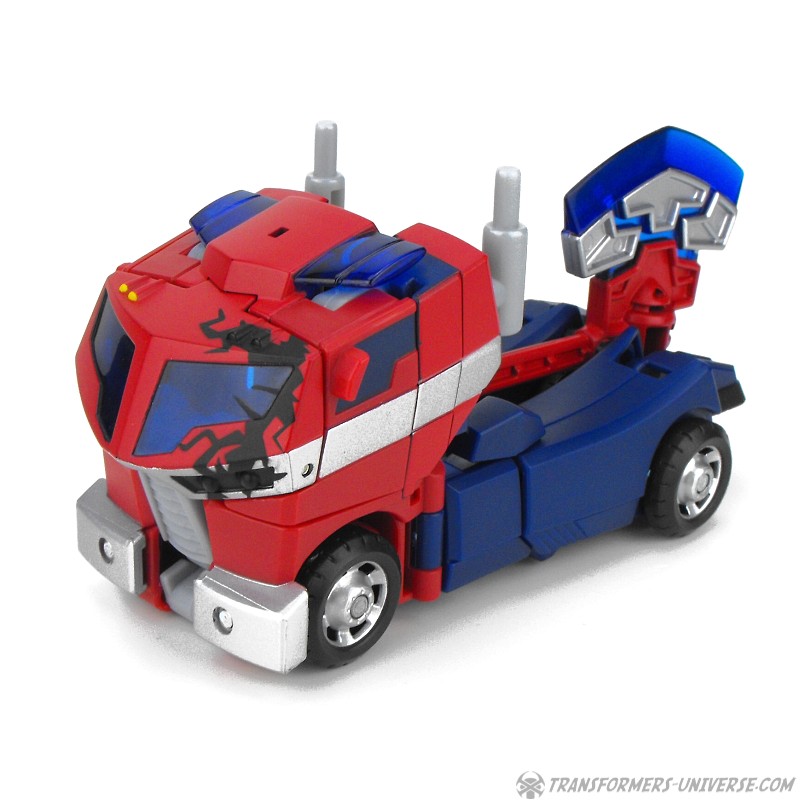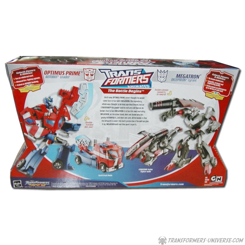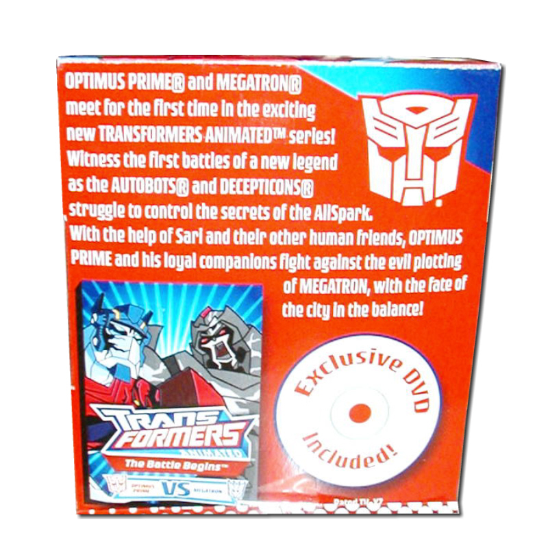Remarks: Naturally there are multiple versions of Optimus Prime in the Animated series (hopefully not quite as many as there were in the Movie line). This version of Prime here came in a two-pack dubbed "Battle Begins" along with Deluxe Megatron and a DVD containing the first episode of the Animated cartoon series. The choice of pairing Earth mode Prime with Cybertron mode Megatron aside, it's a very nice two-pack and worth getting for both figures. While I wouldn't say that Battle Begins Prime is better than Cybertron mode Prime, he is just as good and with just enough differences between the two to justify getting both (if you're so inclined). Besides, I plan on using Battle Begins Prime's axe once I get Voyager Prime, whose axe pretty much sucks (at least judging by the pictures I've seen). So bottom line, the two-pack is well worth getting for all fans of Prime and Megatron.