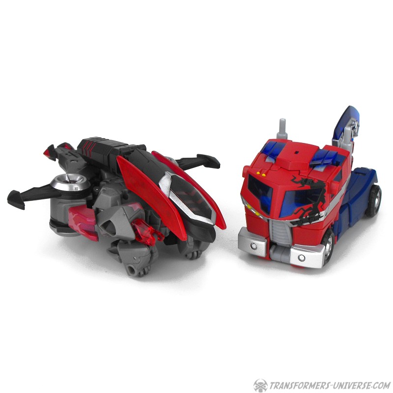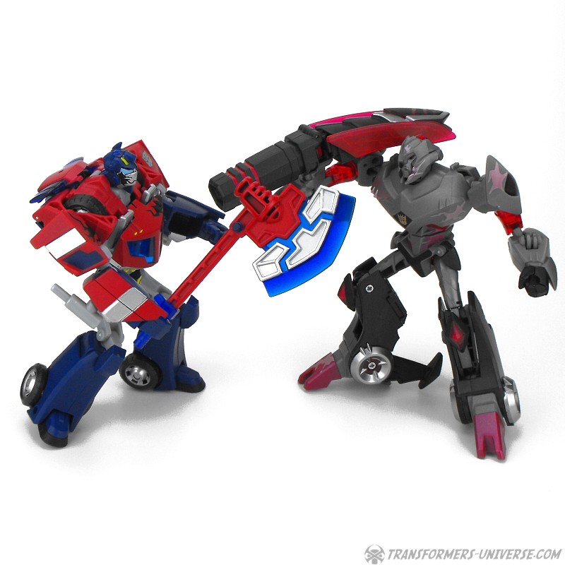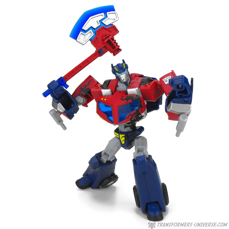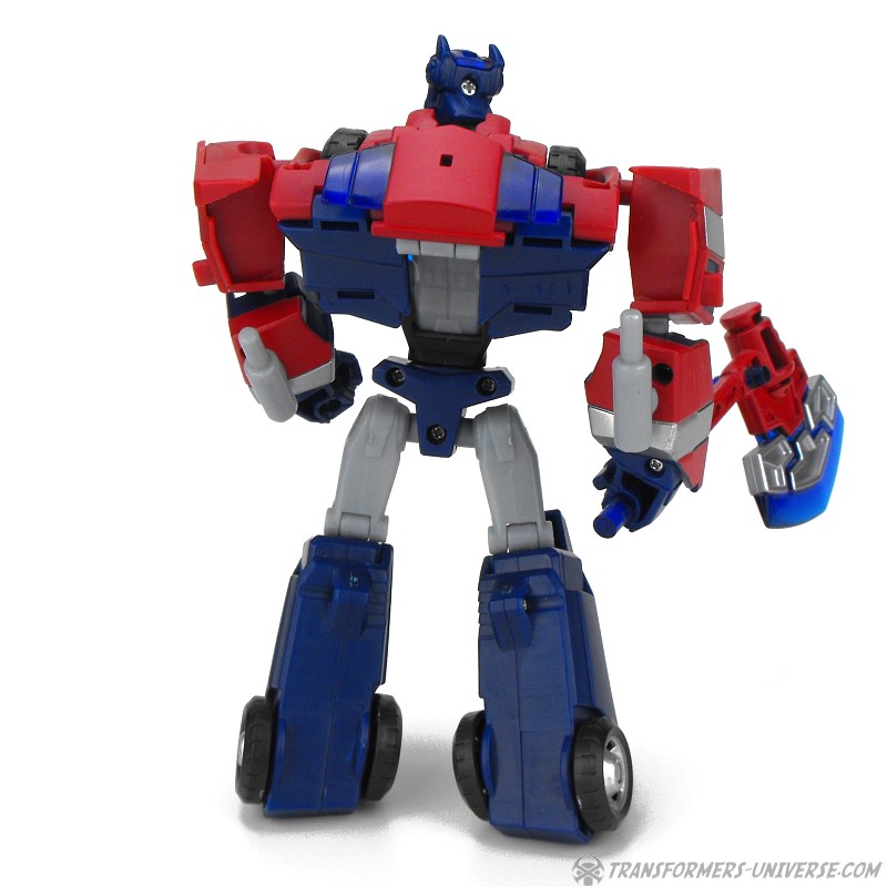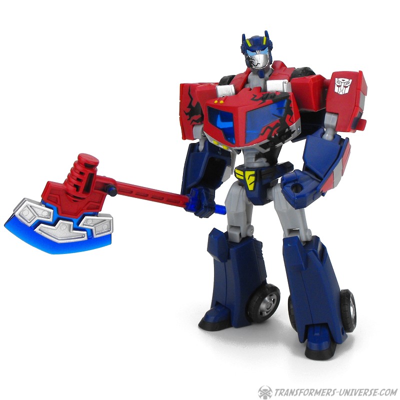 Remarks: Naturally there are multiple versions of Optimus Prime in the Animated series (hopefully not quite as many as there were in the Movie line). This version of Prime here came in a two-pack dubbed "Battle Begins" along with Deluxe Megatron and a DVD containing the first episode of the Animated cartoon series. The choice of pairing Earth mode Prime with Cybertron mode Megatron aside, it's a very nice two-pack and worth getting for both figures. While I wouldn't say that Battle Begins Prime is better than Cybertron mode Prime, he is just as good and with just enough differences between the two to justify getting both (if you're so inclined). Besides, I plan on using Battle Begins Prime's axe once I get Voyager Prime, whose axe pretty much sucks (at least judging by the pictures I've seen). So bottom line, the two-pack is well worth getting for all fans of Prime and Megatron.