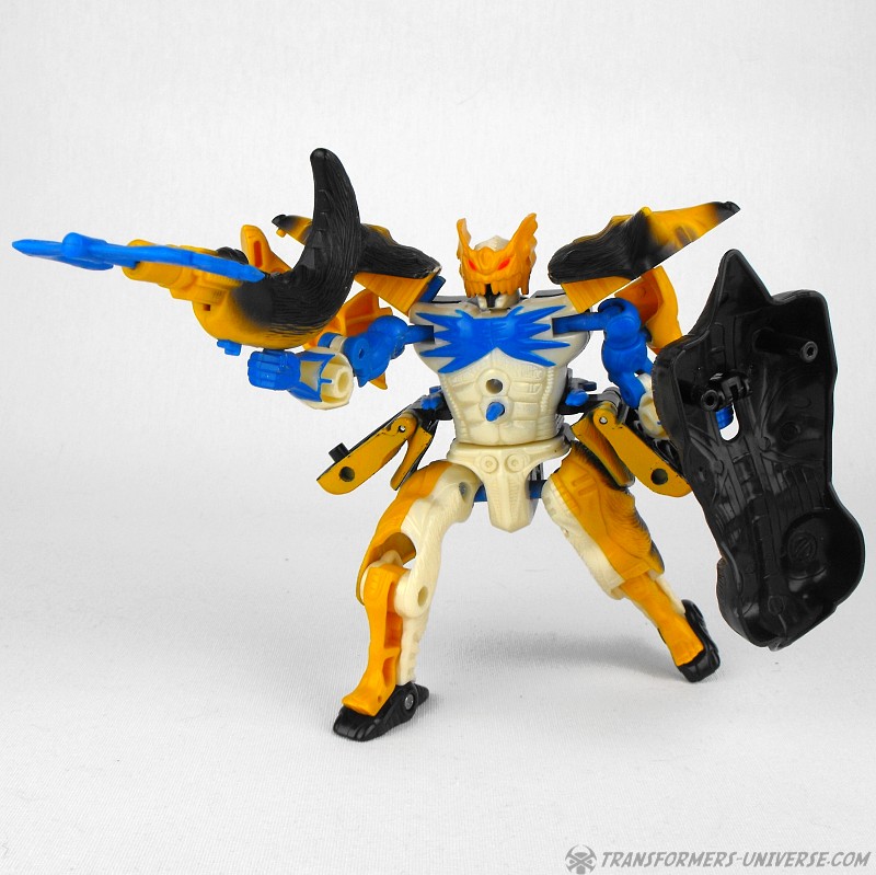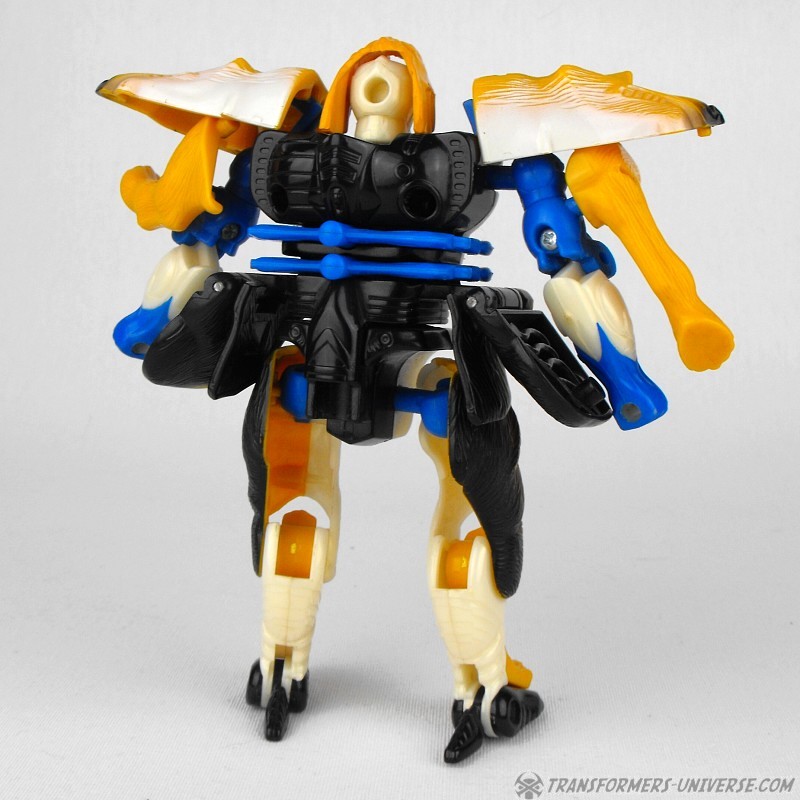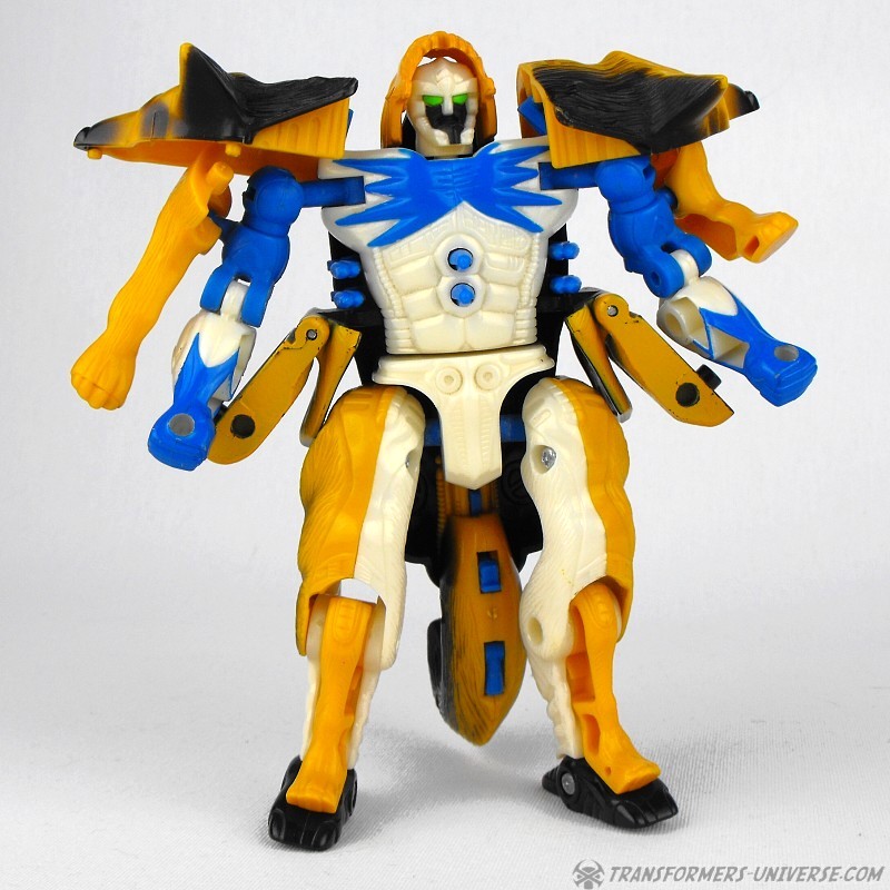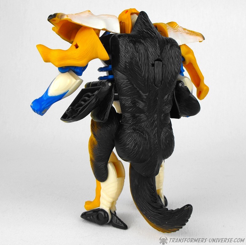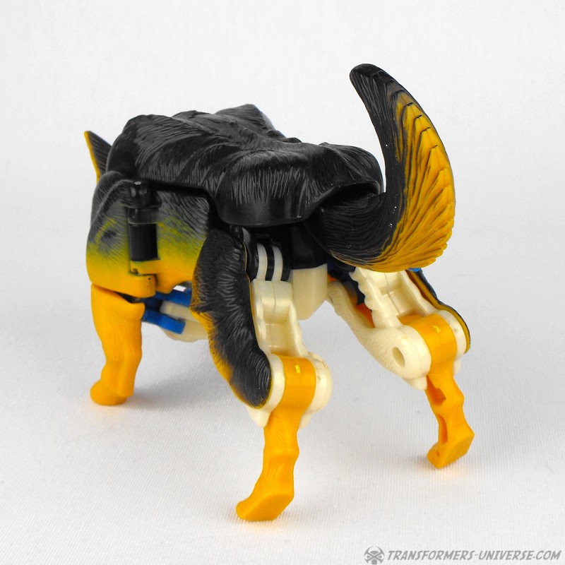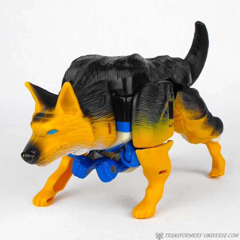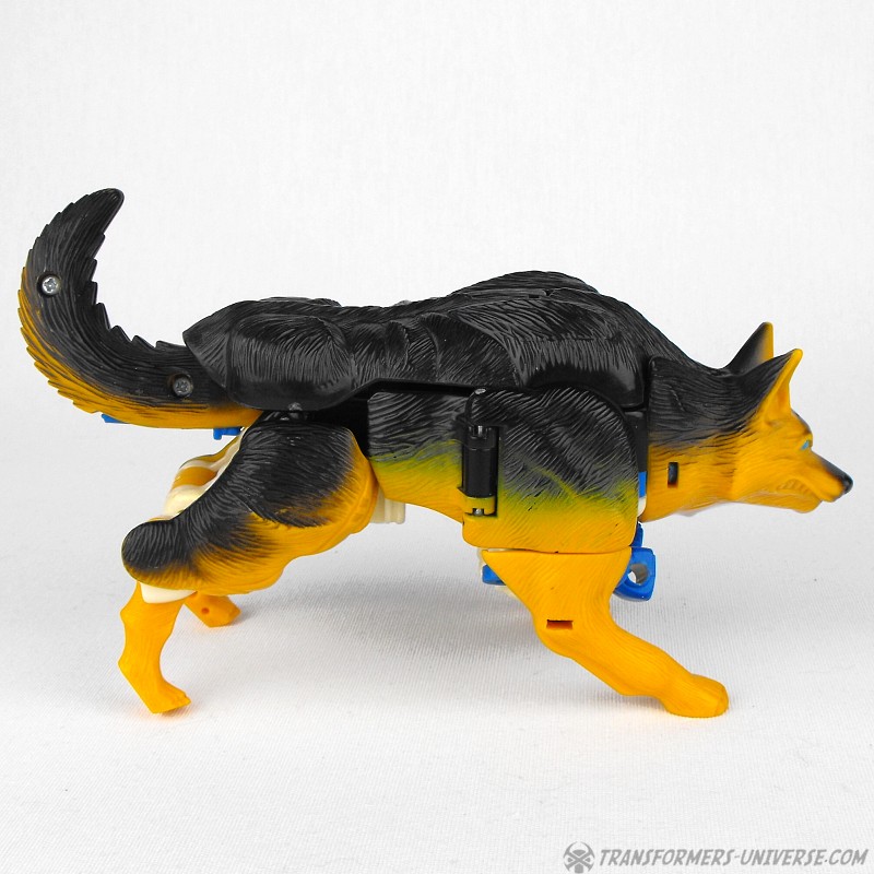 Remarks: Look, it's Commissar Rex (a German Sheperd starring in one of Germany's favorite crime serials) and he's a Transformer now. Whoof, whoof! This figure was originally issued as Wolfgang, a wolf-Transformer, but (having only seen pictures of Wolfgang) K-9 seems a definite improvement in terms of colours. K-9 looks great in beast mode and is a decent robot with some minor problems. Not the best of the Beast Wars line, but a decent figure for dog-fans and Beast Wars fanatics such as myself.