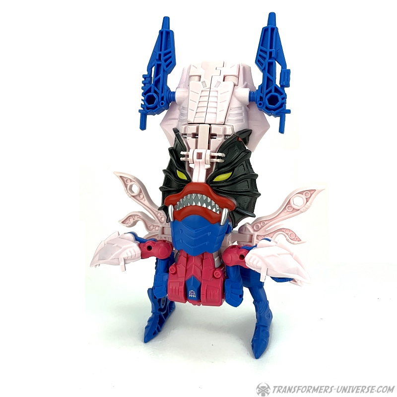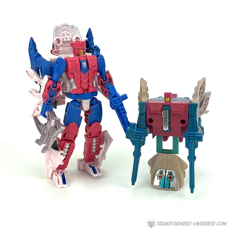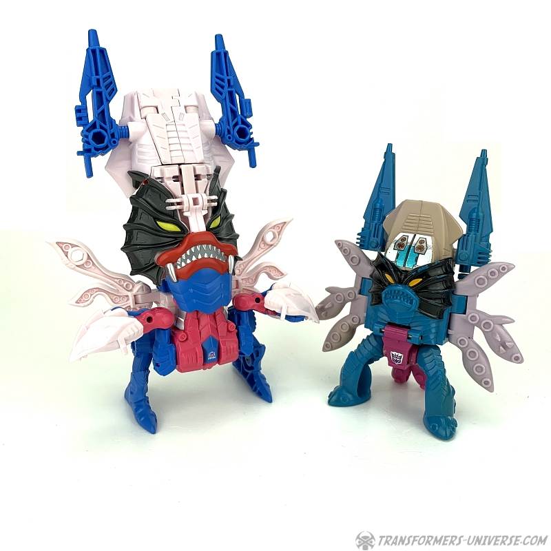 Remarks: Copy and paste once again: all Seacons except Turtler were mindless drones, appeared in large swarms, only to be destroyed over and over again by the good guys. Tentakil was actually the first of the Seacons to appear on screen, as a pair of Tentakils attacking a Japanese city was the plot of Masterforce’s pilot episode. The most interesting thing about Tentakil, though, is that his Beast Wars 2 counterpart Scylla ended up being a female.