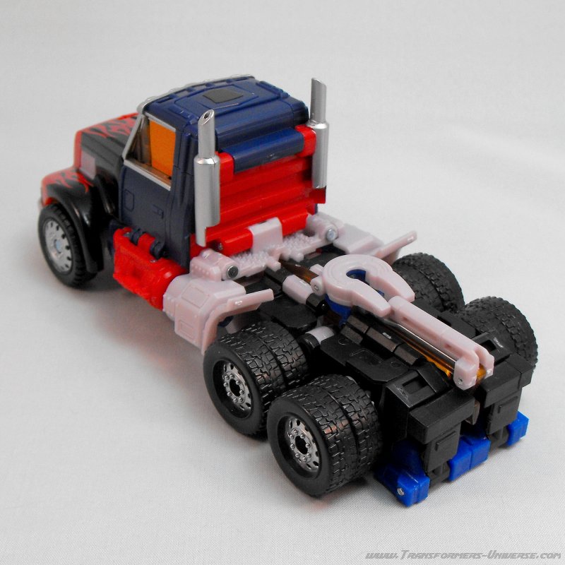 Update 2011-03-26: Since several people have mentioned this to me: yes, it is possible to somewhat lessen the impact of the big wheels on Optimus' legs by twisting them around and sinking them into the legs. See last picture in gallery. Optimus is still too small, though: