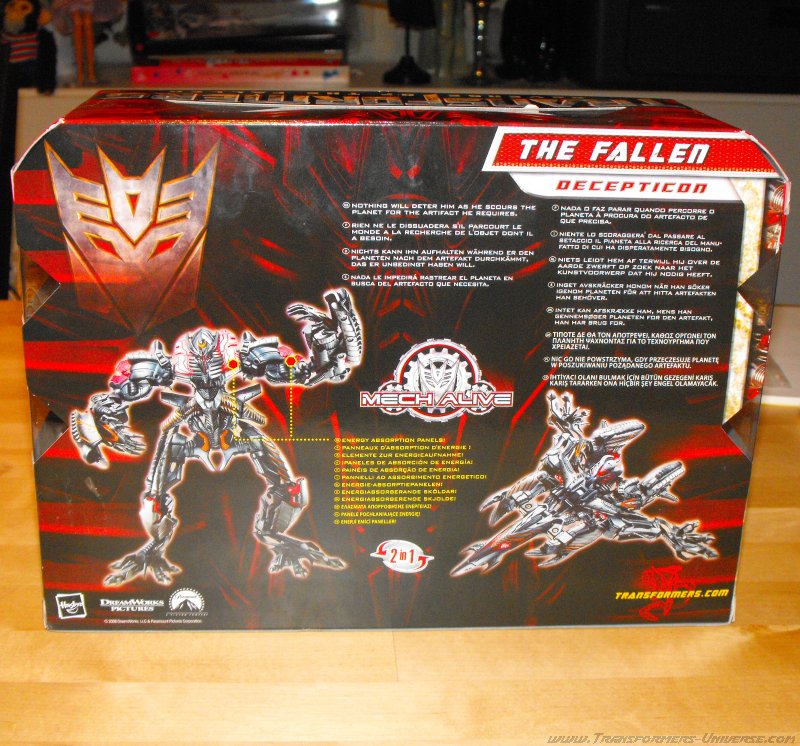 Remarks: Now there is a lot I could say about The Fallen as a character, most of it bad. His abyssmal showing in the ROTF movie, the completely nonsensical idea that he is the same character we saw in Dreamwave's War Within series, or the fact that the big showdown between him and Optimus Prime lasted all of 30 seconds before he was killed faster than just about any other character who had the pleasure of dying in that terrible movie. But I'll spare you yet another rant about the lacking talent of Michael Bay and get down to the toy, independent of its connection to that barely coherent arrangement of action scenes called a movie.